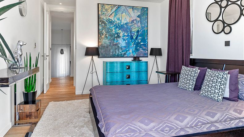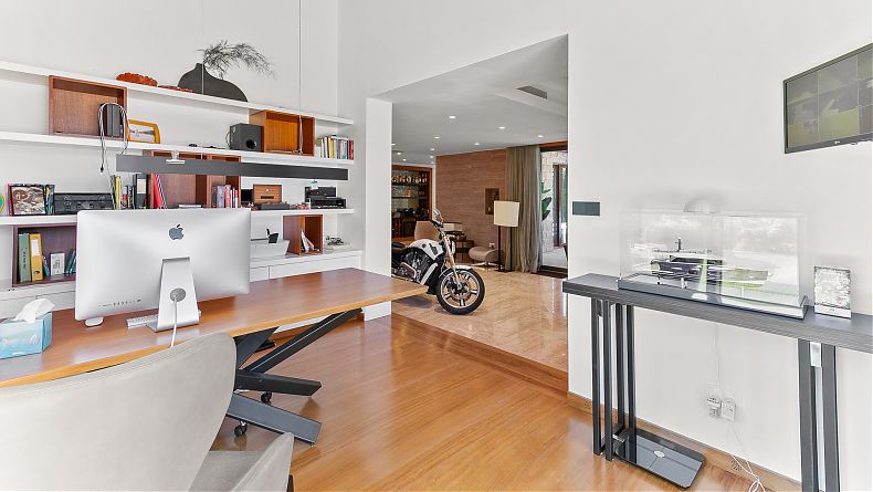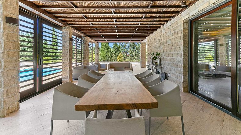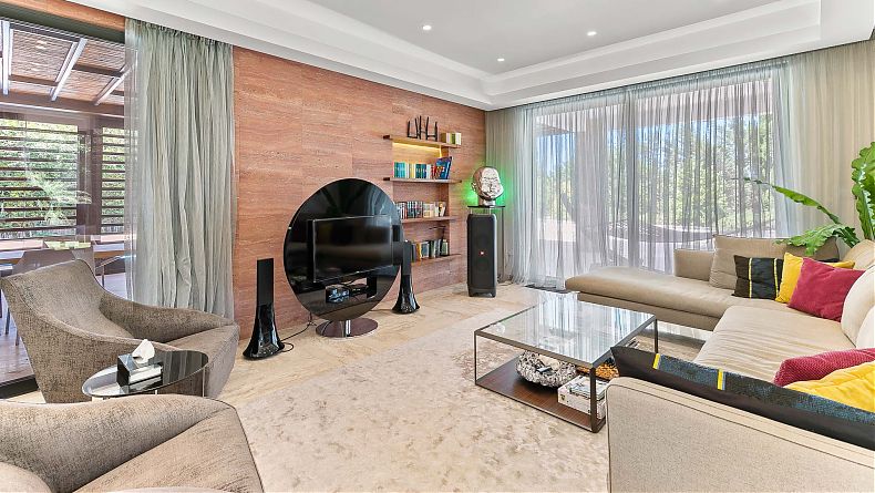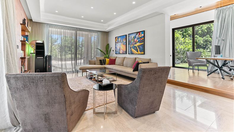 The villa consists of stunning outdoor entertainment areas, with a beautiful large garden, areas of sumptuous lawn, a gorgeous swimming pool, gym and a barbecue area.