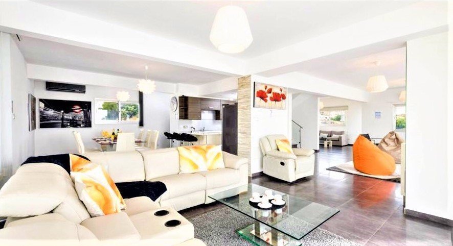 A unique 4 Bedroom Villa, in Ayia Napa. This house has the best location in the area, and has been fully renovated creating a modern fully comfortable residence. Private, gated, with unobstructed sea views, and immediate access to the center of Ayia Napa. It consists of a master bedroom with sea views and views of the newly made Sculpture park of Ayia Napa, which has en-suite facilities and walk in closet, 3 more bedrooms which 2 of them have sea views as well. On the ground floor there is an open plan kitchen-living room with direct access to the outside pool or and the outside area in general. Large outside area surrounding the pool and behind the house as well. Viewings highly recommended!!!
