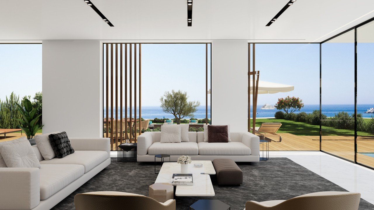 The project is a unique, luxury seafront development of 4 five-bedroom villas, located in a privileged seafront setting on the east side of the Ayia Napa Marina. Surrounded by the endless blue horizon of the Mediterranean Sea and embodying the latest trends in luxury island living, this cluster of villas features a bold display of contemporary architecture, combined with stylish elegance and practical functionality. The project is an exclusive new development of luxury living spaces. Built close enough together to create a delightful little community, each home offers an expanse of space to allow for maximum privacy and comfort. The sparkling white exterior is accented by wood and light-colored stone paneling, which exudes a sense of luxury and carefree elegance that is complemented by the  white sands and azure waters of the island’s eastern coastline.  The villas comprise three-floor residences, which include a basement, ground floor, and first floor, as well as five bedrooms and five bathrooms. The interiors are constructed in such a way as to allow beautiful sea views from every vantage point. Large, carefully placed windows and glass railings on all the balconies create an ultra-modern exterior, but also stream in an abundance of natural light while offering a clear view of the beach right at your feet. In this way, the beautiful outdoors is never out of sight. The large balcony also overlooks the overflow pool and deck area, which residents can enjoy in the privacy of their own home. A lusciously landscaped roof garden allows for stunning sea views across the horizon. Just a few steps away is the sandy shore. High Energy efficient Building Aluminum wood finish vertical features All areas high quality Italian or Spanish tiles of large dimension 60cmx120cm Bedrooms. Laminate Parquet Decking around pool area Sanitary Fittings Laufen, mixers Grohe High ceilings High quality Aluminum sliding doors, double glazed Underfloor central heating with VRV heat pump Mitsubishi or Daikin a/c units in all areas Blum soft close runners for drawers Blum soft close hinges for doors Synthetic granite work top of high quality Automation System for lighting and roller shutters (provision for shutters) Fully flexible and expandable automation system TV, and voice and data (internet) points RJ45 in all rooms and bedrooms Structural cabling for data and voice with cat6 cable Provision for satellite dish Solar Heater Overflow swimming pool Provision for solar panels Status: Off plan