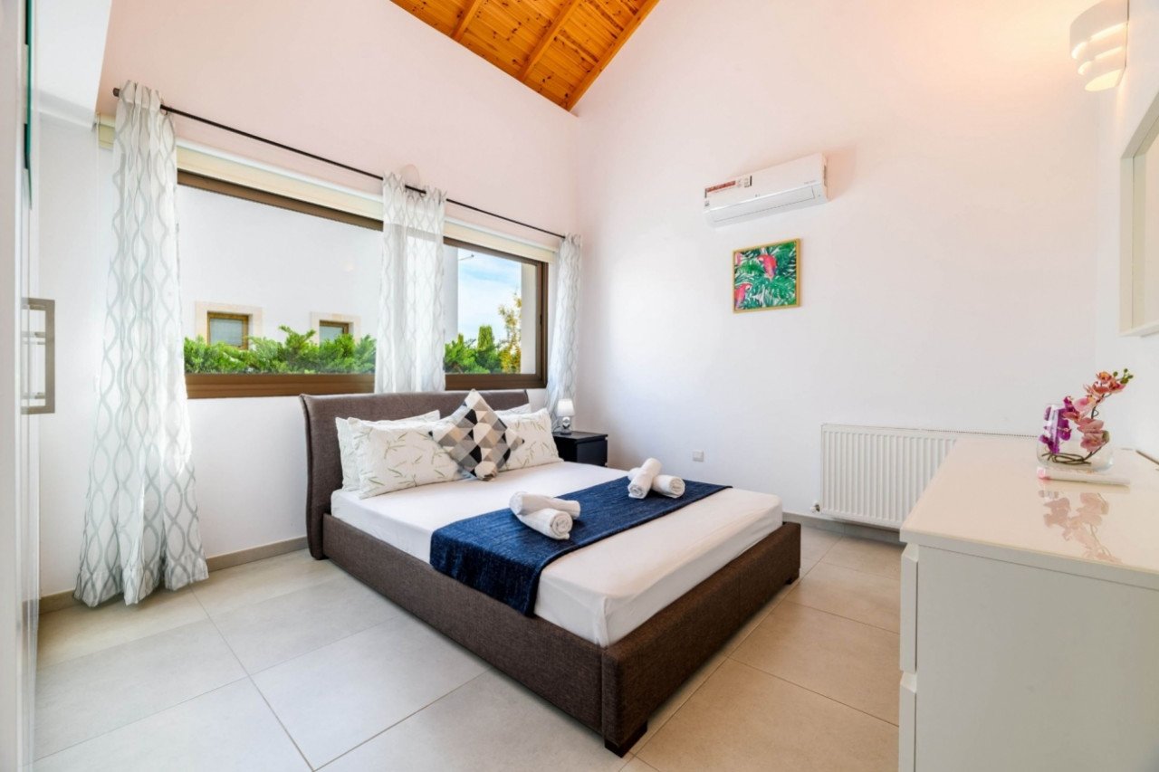 A stunning new 4-bedroom Villa in Ayia Thekla area. The best advantage of this Villa is of course its location. Located in a quiet residential area, at one of the best spots in Cyprus and Famagusta area, just a few meters away from the phantasmagoric new Marina of Ayia Napa. If this wasn’t enough, the beach is just 150m away, and the touristic city of Ayia Napa just 2 minutes away by car. Also, there is a direct access to the motorway and all the villages of the Famagusta region. Now, on the inside, this house is modern-luxury and relaxing. It consists of 4 spacious bedrooms, with en-suite private bathrooms, an open plan kitchen-living room and a great decoration! Outside the plot of the house is huge, with big verandas, mature gardens, of course a gorgeous swimming pool, an outside BBQ, and a wooden pergola with a dining table. Furthermore, for your safety the house offers a security system, and a private parking space. Imagine having all the above, plus the opportunity to have sea views every day!!