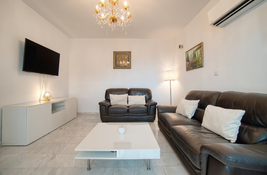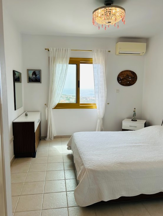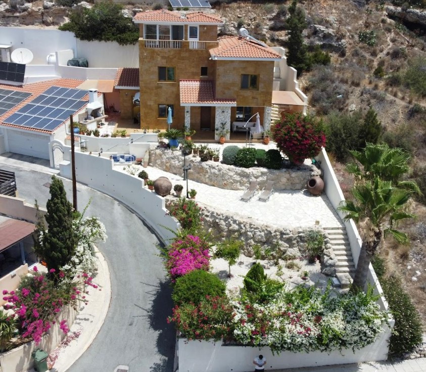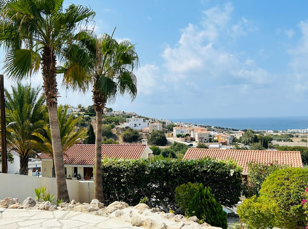 This villa is located just a few minutes drive from Paphos, the Aspire private English School, Lidl supermarket with panoramic views of the Mediterranean coast and a ship on the rocks.