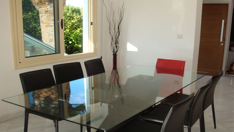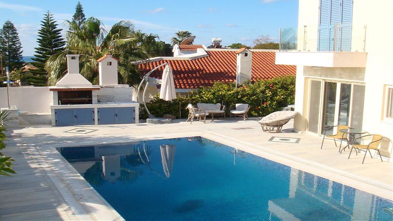This spacious luxury villa is situated only 100 m from the sea with beautiful views of the sea and the famous beach of Coral Bay on the one hand and the mountains on the other.