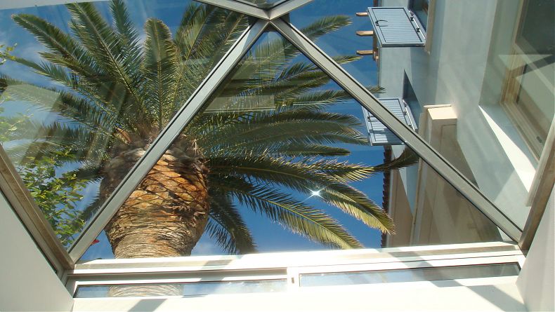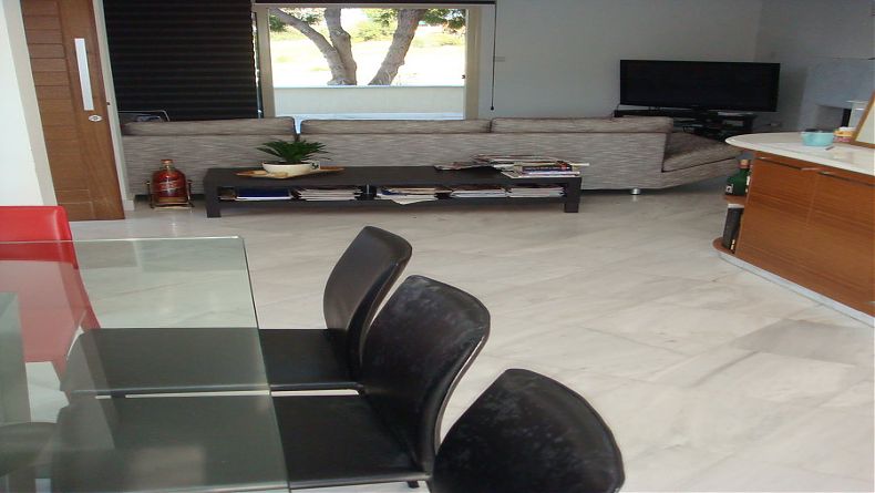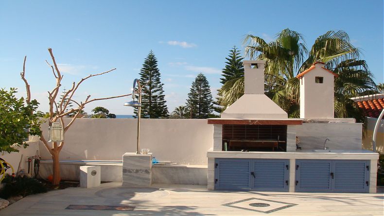 It comprises 3 floors + large basement. White marble ’Dionysus’, specially brought from Athens, has been used throughout for all floors of the house and yard, as well as in the bathrooms, kitchen sink and worktops. Scandinavian wood IROCCO was used for the kitchen units and fitted wardrobes.