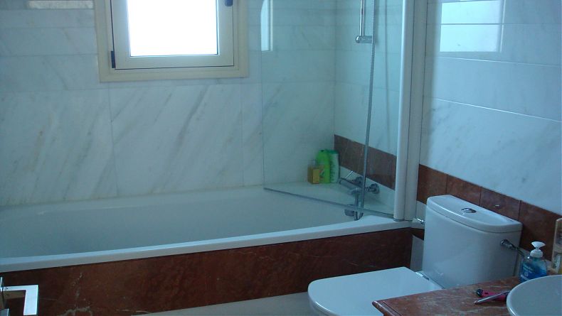 The first floor consists of 3 bedrooms with built in wardrobes and 2 bathrooms (the shower is en suite) and the second (top) floor has a small room with a large roof terrace offering magnificent sea and sunset views.