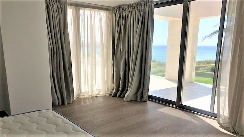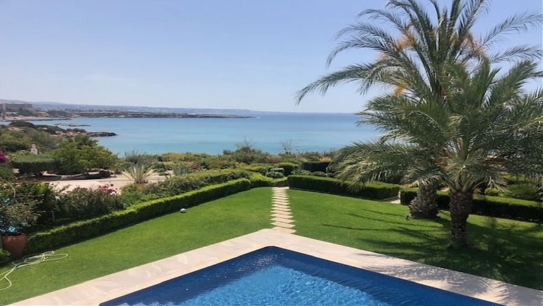 Seafront villa on the beach. 4 bedroom modern villa with fabulous sea views and additional living space located at the First Line to the Sea in the resort of Coral Bay, Few steps from the lagoon for swimming and 3 minutes walk to the sandy equipped beach of Coralia, variety of restaurants, shop, 615 bus stop. The city and the English School are about 10 minutes by car.