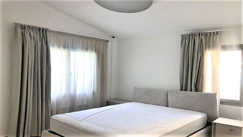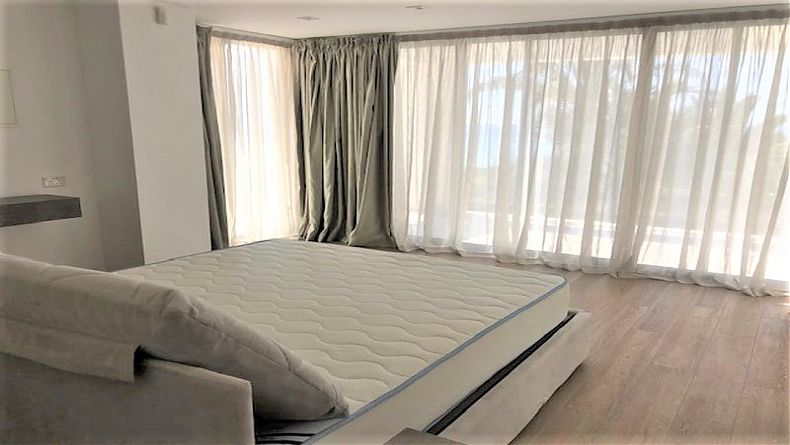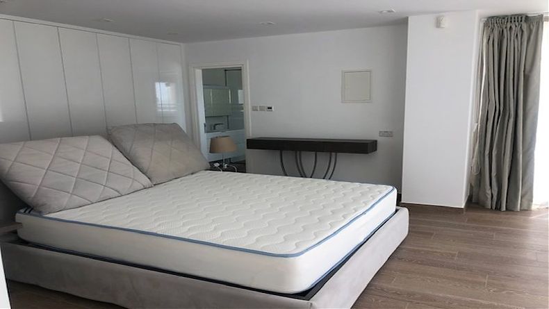 A staircase from the living room leads to the second floor to spacious master bedroom with own balcony overlooking the sea. The bedroom has an en-suite bathroom.