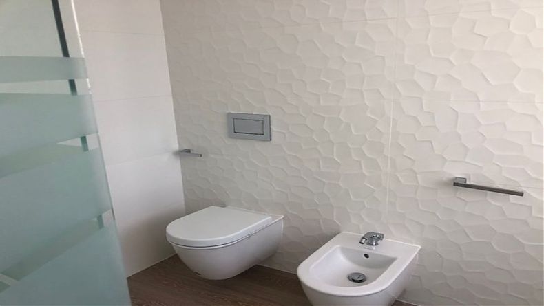 On the ground floor of the house there is an entrance hall, a guest toilet, a spacious living room with sea views, a dining room with access to the terrace, an open plan kitchen.