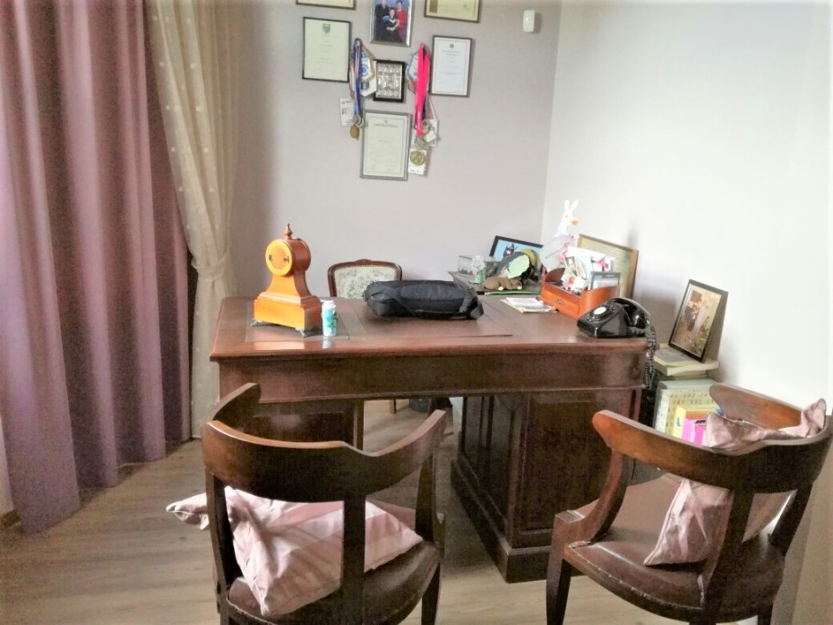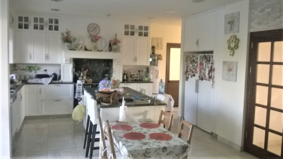 A 4 bedroom detached house for sale in Dali, Nicosia with an extra room which is currently being used as an office. It is located only a 15 min drive from the town of Nicosia, 20-30 min drive from Larnaca, 40 min drive from Ay. Napa and a 40 min drive from Limassol. There is a private swimming pool with shower, changing room, barbecue area, dog house and WC outside. There is also a big attic of 70sqm approximately with storage room, shower and WC while the rest of the space could be used as a playroom, cinema or gym. The house consists of one big dining room, two living rooms which are open plan to a French styled kitchen and extra laundry room. There is one big bathroom and guest WC, big walking closet, a/c units in all of the rooms, floor heating (petrol), solar panels, 3 glaze windows, covered/uncovered and garage parking and mature gardens with fruit trees. Another plus is that there is space to build another house, tennis court, offices, swimming pool or even gas station.