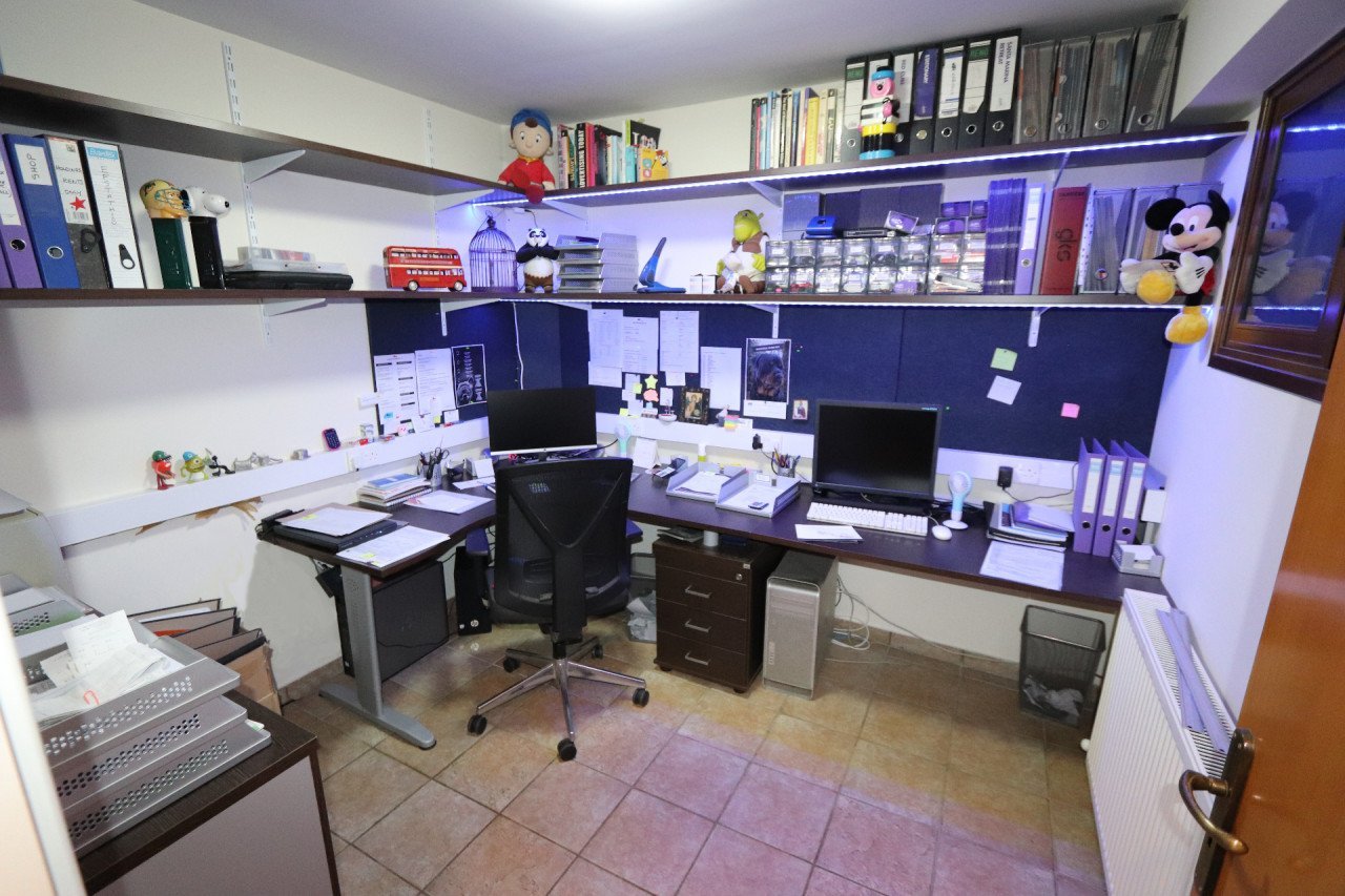 Office Space with fitted desks, shelves and structured cabling, RGB effect lighting