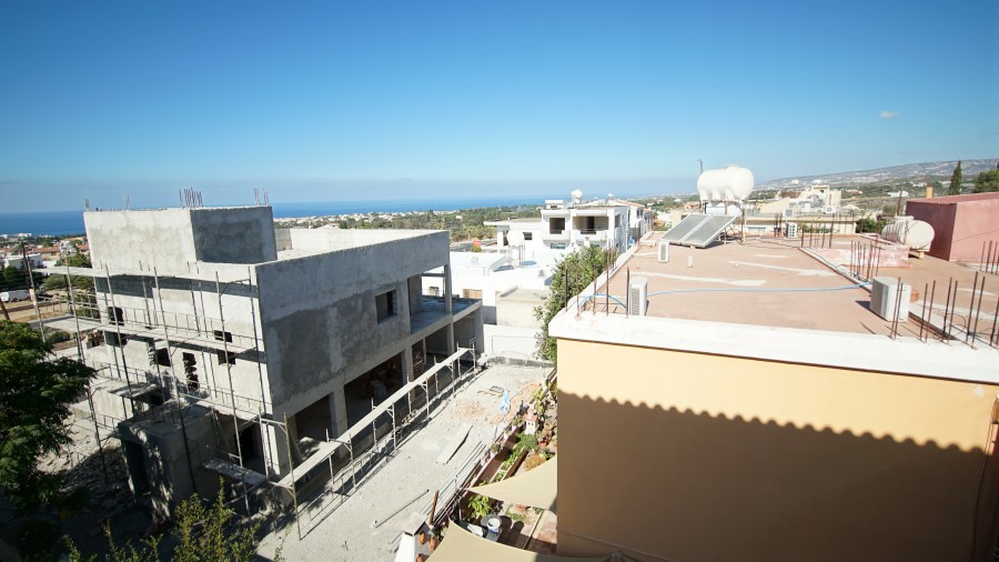 This 4 bedroom house situated in the outskirts of Empa Paphos, has the possibility to build another 2 bedroom apartments on first floor and a very spacious one bedroom in the basement. Walking into the property from the main entrance you are welcomed by a open plan tv room to the left next to a spacious kitchen to the right you have a dinning room area and another sitting area. Moving on through the tv and dinning are a separate door allows you to enter to the 4 bedrooms to the right there are 2 double bedrooms with nice sea views and to the left shared family bathroom, another 2 double rooms which includes the en suite master bedroom, The property has a large basement which could be a huge one or 2 bedroom apartment or maids room spacious covered outer basement to park 3 cars and still have a lot of space, and a stretch of garden for a few trees. Walking up the stairs to the first floor there is 2 , 2bedroom unfinished apartments with stunning sea and mountain views.