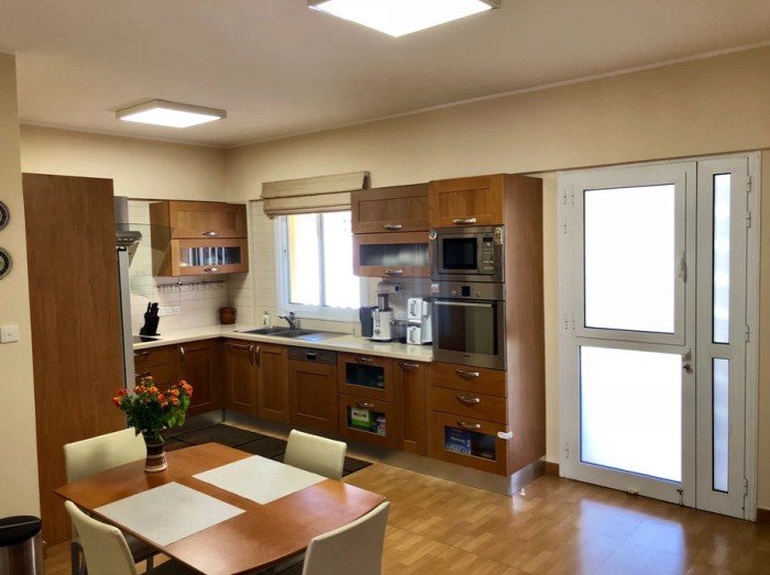We are delighted to offer you this beautiful, cozy house insulated from the outside using latest technologies. Build on a plot of 850 m2 with the covered area of 330 m2. The house is located in the area of Episkopi, Limassol. Developed infrastructure. Sea view. Two floors, 4 large size bedrooms, 2 balconies and an open terrace with sea view. Large room with fireplace, office, two kitchens (one with an electric stove, the second with gas stove), appliances (microwave, two ovens, two refrigerators, dishwasher). Household room with washing machine and dryer.
