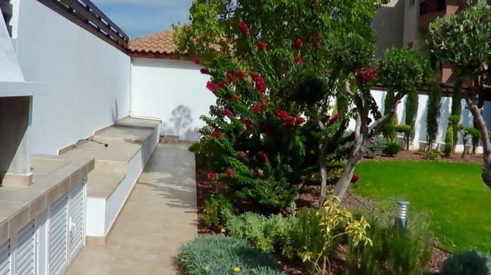 There are 3 bathrooms (large Jacuzzi, shower, bidet), sauna (near the shower). Gym (with heated floor), water heating and air conditioning in all rooms. Surveillance cameras with remote access monitoring (6 cameras), solar panels for production of electricity (14 pieces, made in Germany, with remote control). Main floor windows have automatic shutters. A newly planted garden with automatic watering system and water well. Outside, there is a barbecue area and a large covered veranda. The house is sold furnished (optional). The main gate and garage open automatically.