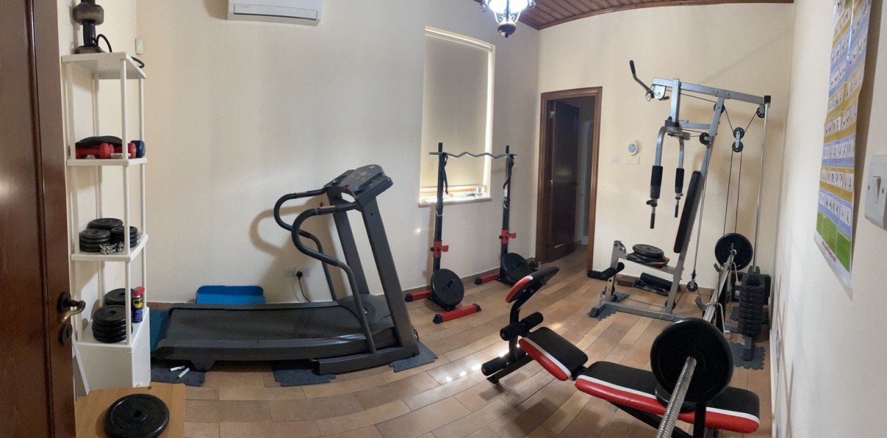 On the ground floor, the villa boasts a well-appointed kitchen, a spacious living room, 2 guest WCs for utmost convenience, an office space for work or study, and a secondary kitchen. Additional features include 2 storage spaces, a cozy fireplace, and a gym area with a shower room and a hammam, ensuring a perfect blend of relaxation and fitness within the comfort of your home.