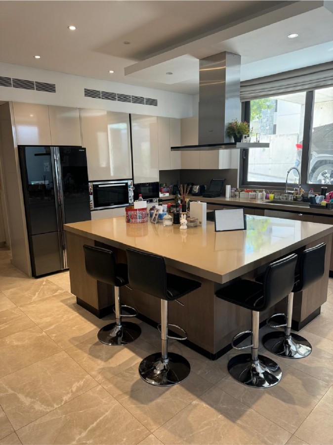 Built in 2018, this villa boasts four generously sized bedrooms on the first floor. Two of the bedrooms are ensuite, while the other two share a large, well-appointed bathroom. The ground floor is designed for comfort and convenience, with a separate family room, a spacious living room, a dining area, and an office space. The modern kitchen is ideal for family meals and gatherings.