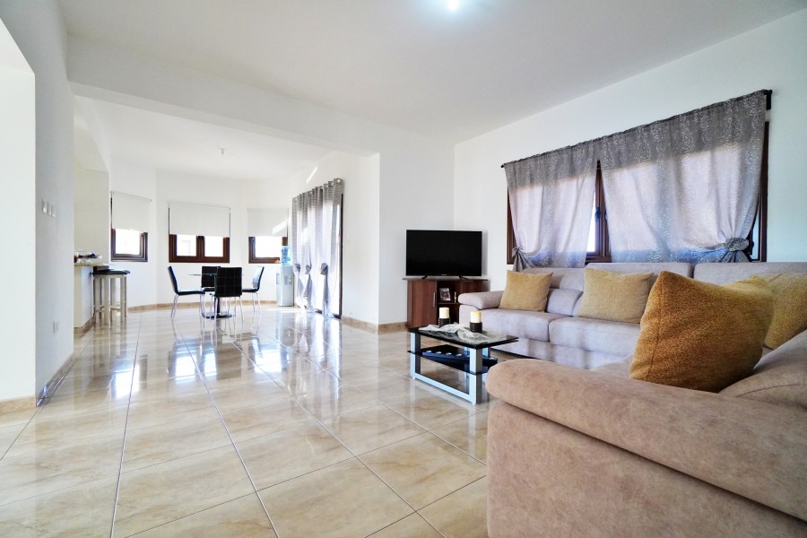 This spacious 4-bedroom home is perfectly situated in a peaceful cul-de-sac, offering maximum privacy with a green area on one side and a walking path on the other. The open-plan layout seamlessly connects the living, dining, and kitchen areas, creating a bright and functional space. The property features one bedroom on the ground floor, while the upper floor boasts three large bedrooms with floor-to-ceiling wardrobes. The family bathroom includes both a walk-in shower and a large bathtub with a hot tub feature. Two balconies offer relaxing outdoor spaces, with one overlooking the serene green area. Conveniently located within walking distance to a supermarket and a traditional restaurant, and just a 3-minute drive to schools, this home is an ideal choice for families seeking comfort, privacy, and convenience.