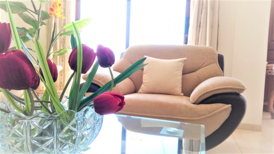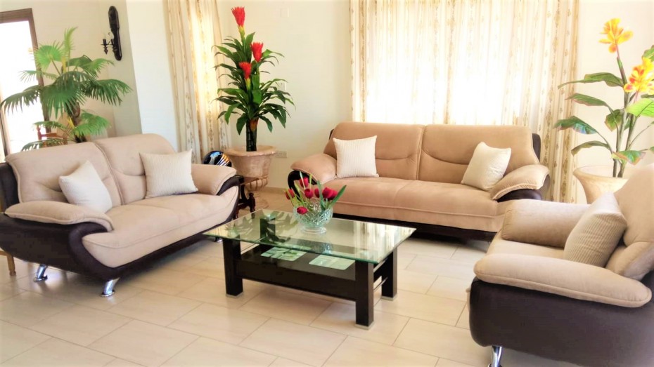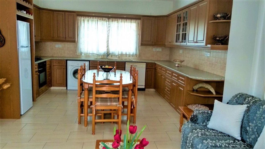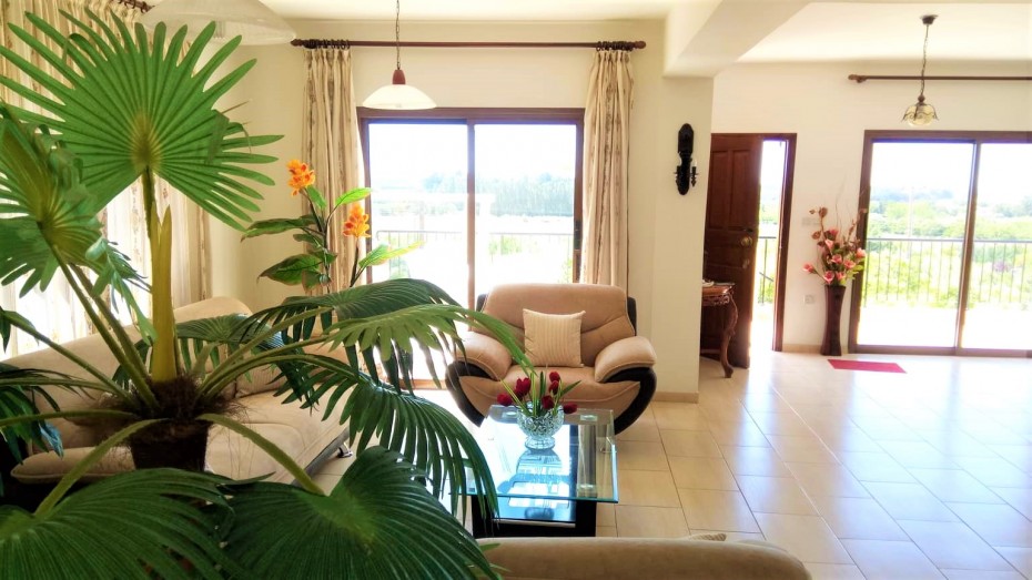 The villa is set in one of the most beautiful locations in Geroskipou, Paphos, not only is it quiet, it is also close to some of the main attractions in Paphos. It is situated only few minutes away from the Beach front of Kato Paphos. It must be the only Villa, which is in the area of Paphos Waterpark and Other Athletic Resorts.The villa has a title deed. It located in a quiet residential area offering panoramic sea and inland views. The beautiful large swimming pool is quite private and measures 6m X 12m with steps set in a recess. Poolside shower, Sun Loungers and umbrellas surround the swimming pool. Automatic lights illuminate the swimming pool area at night. A combination of fencing, mature trees and colourful shrubbery ensure the pool area enjoys a reasonable degree of privacy. There are 4 bedrooms and 3 bathrooms. The master bedroom has a double bed with en-suite shower room has a large private balcony overlooking the swimming pool and surrounding countryside across to the sea with sea views. A safe box is available. There are 2 twin bedrooms and 1 double bedroom with mountain and sea views and with a balcony in the one bedroom overlooking the sea and the countryside. Each bedroom has fitted wardrobes. All four bedrooms have an air-conditioning unit. The villa boasts two sitting areas, both of them comfortably furnished. The large kitchen is fully equipped with oven and hob, fridge/freezer, microwave and washing machine. The dining table can seat 8 persons. A guest cloakroom also located on this level where you can enjoy your tea with a panoramic views. On the ground floor there is a storage which can be used as an extra bedroom with toilet. Outside the kitchen you can find the BBQ. Patio doors lead from the living area to the balcony complete with a swing lounger. All in all, it is a luxury 4 bedroom villa located in a serene and residential environment, in a large landscaped plot. It is close to the beach and only a short distance from the Harbour. It is just 5 minutes drive from Kato Paphos, golf courses and hotels, 500 m from the the shops and supermarkets, water park, tennis, mini golf, go-carts, 5 minutes drive from a selection of cafes and restaurants. The Villa is situated only 5 minutes from the beach. The Paphos airport is 6 km away.The property was constructed to the highest specification. A beautiful residential property in a quiet residential area offering panoramic sea and landscape view.
