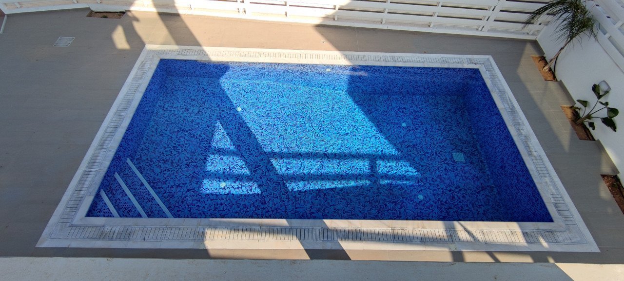 The plot of the villa is 331sq.m and it includes a small garden place, a barbecue area, a covered parking and a big overflow-mosaic swimming pool.