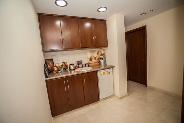 Wooden kitchen with granite countertops (walls also covered in granite)