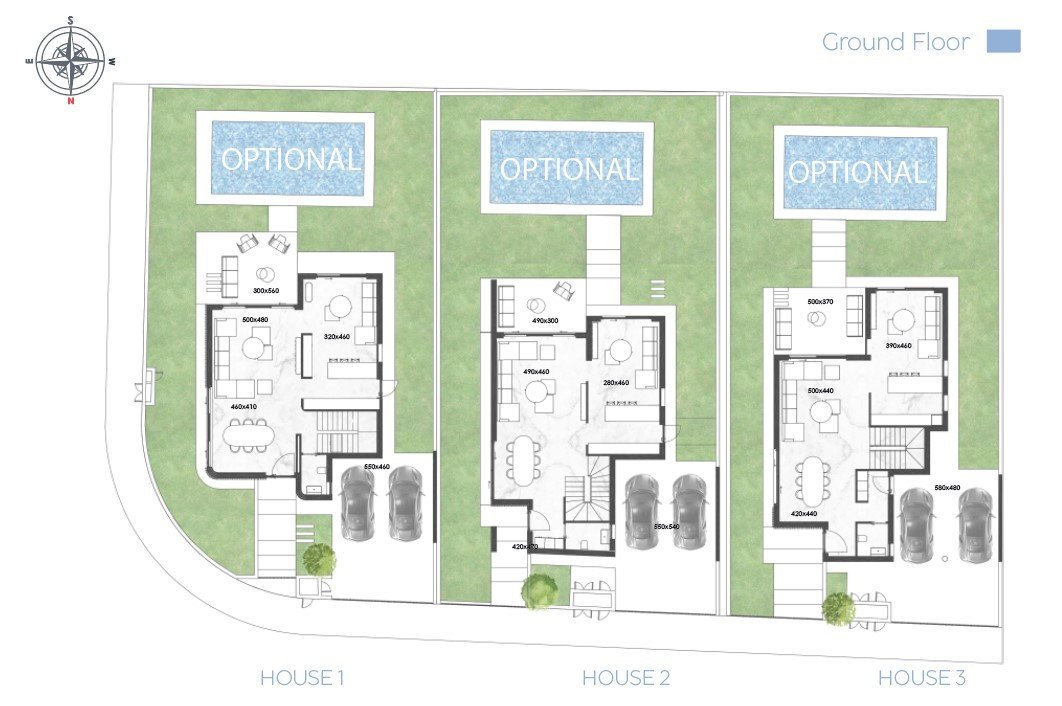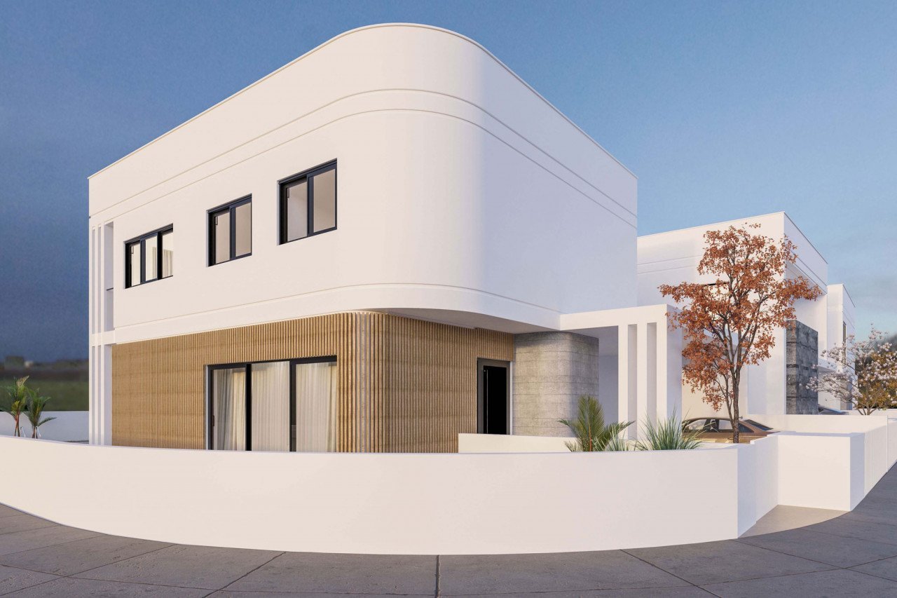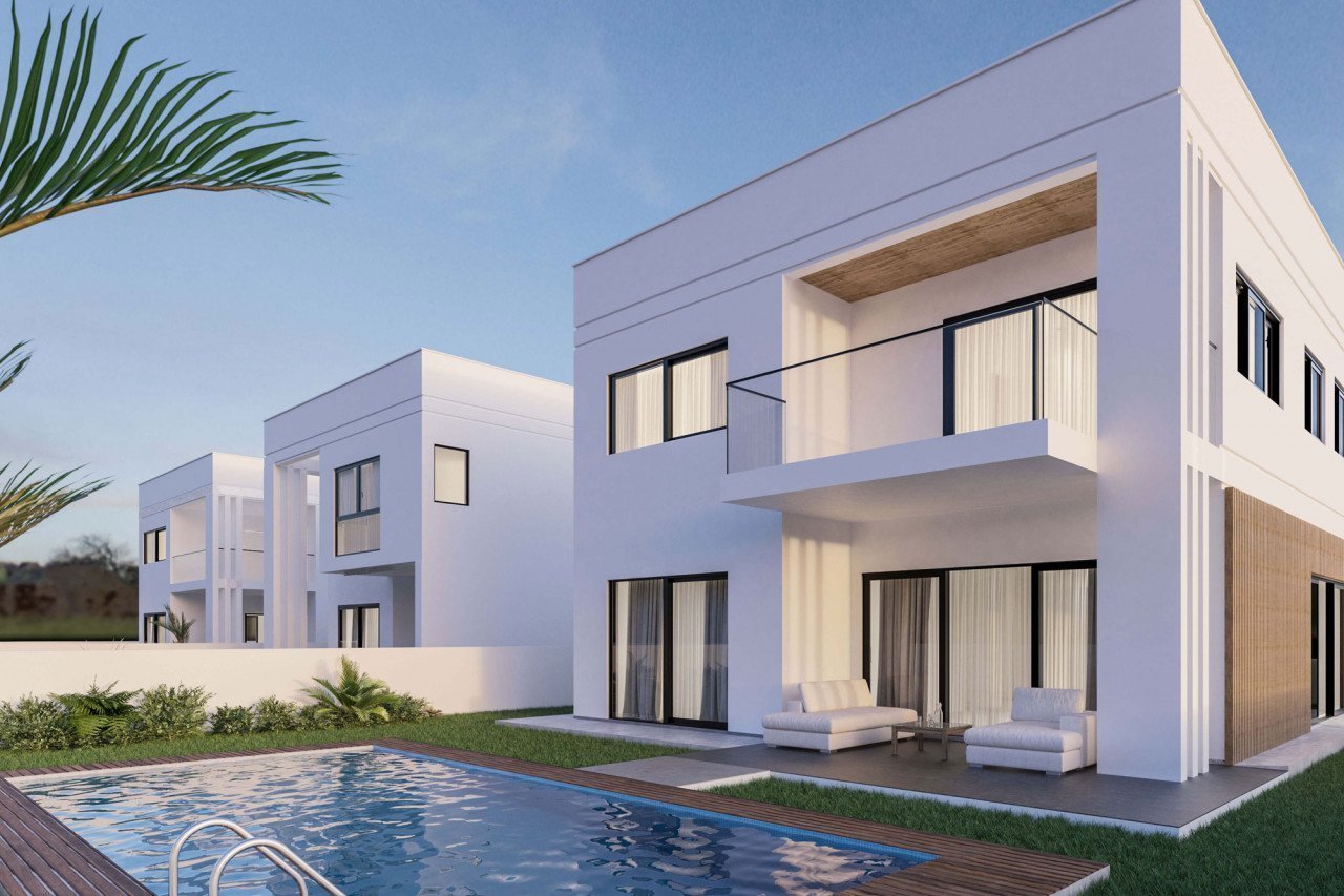 Luxurious villa in modern design with a wonderful large garden, optional pool placement and a covered garage for two vehicles.
