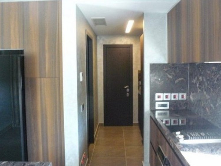 Kitchen cabinets with a combination of veneer Walnut wood and white laminate, including BLUM type soft-close drawers and doors systems.