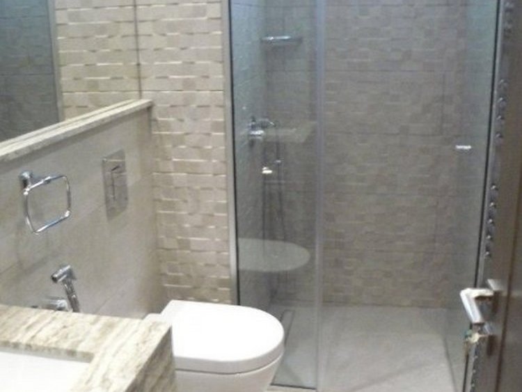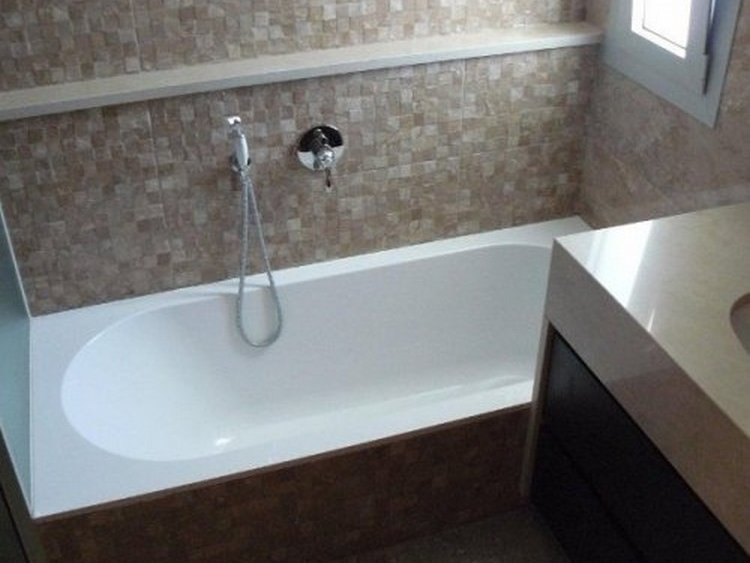 Master bedroom: Designer shower, double size basins in Spanish Marron Brown marble. Hydro massage Jacuzzi, with Irokko (African Teak) wood frame decking.