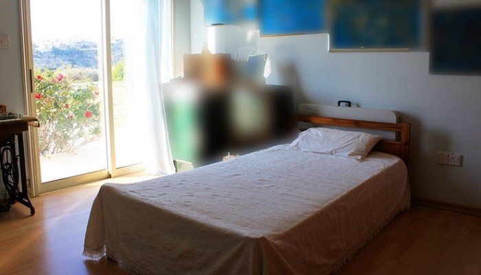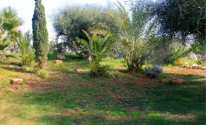 On the second floor there is a bedroom,small office and bathroom. There is an unobstructed view to the sea and village. It has a very big garden with grass and trees.