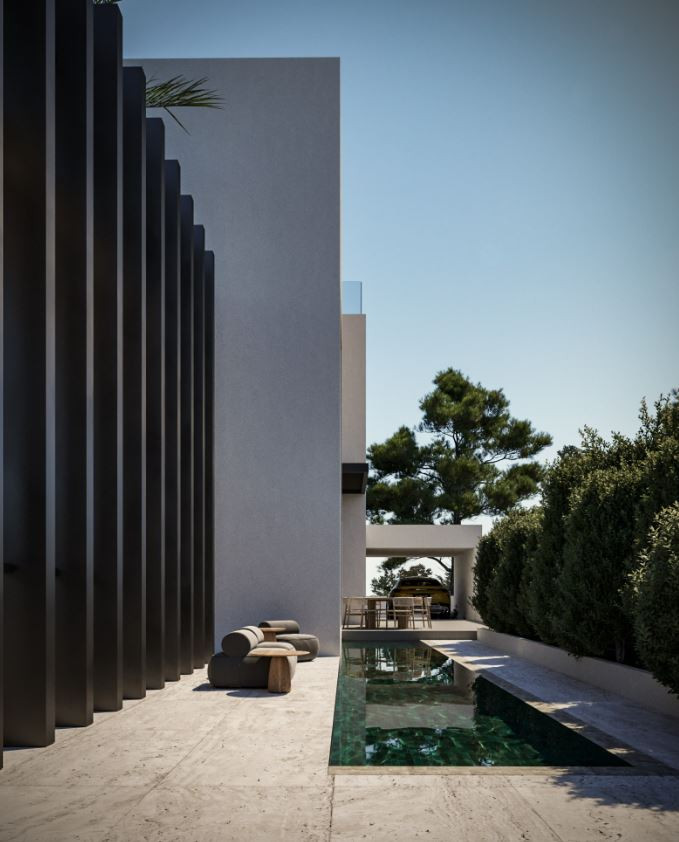 A luxury villa nestled in the serene surroundings of Moni.