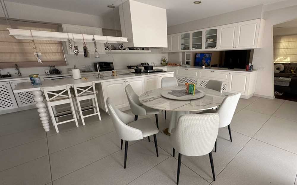 Four-bedroom house in Archaggelos, Nicosia.The ground floor of 210 sq.m. consists of an open plan living/dining room, a kitchen with a sitting/dining area, a guest toilet and two covered parking areas. The first floor of 220 sq.m. consists of four en-suite bedrooms.