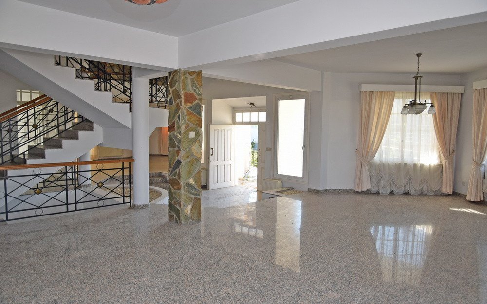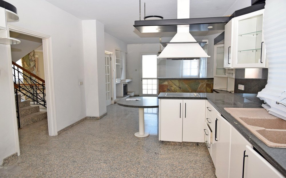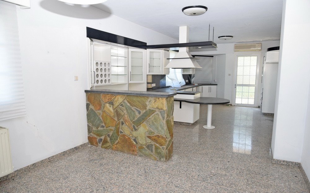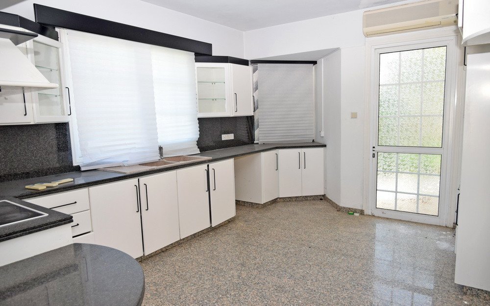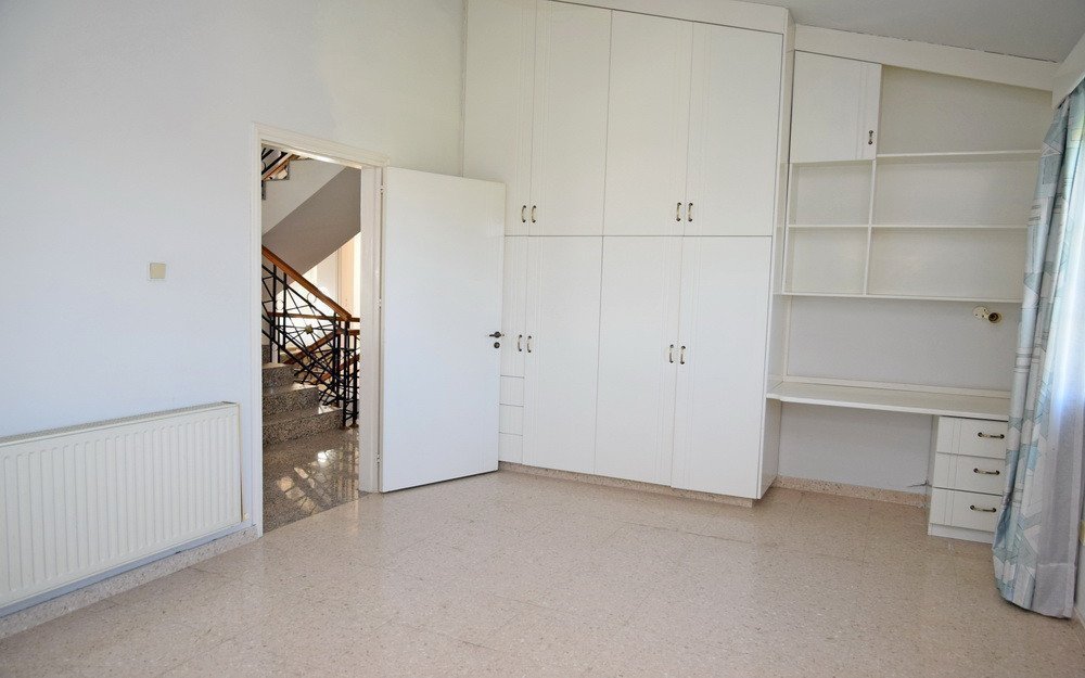 This is a four-bedroom house in Egkomi, Nicosia.It has an area of 345sqm and consists of a living room, dining room, kitchen, office and guest toilet on the ground floor, and four bedrooms (one of which is en suite with a walk in closet), small kitchen, bathroom and an additional room on the first floor.