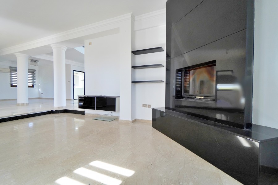 The expansive basement extends the luxury with a cinema or gaming room, maid’s quarters, and a versatile mirrored suite with an ensuite bathroom—ideal as a private gym or wellness studio. Outdoors, mature gardens with palm and fruit trees frame the residence, while vast terraces invite gatherings under the Mediterranean sun. The centerpiece is the impressive overflow swimming pool, set against a backdrop of uninterrupted sea views, offering an unparalleled sense of exclusivity and serenity.