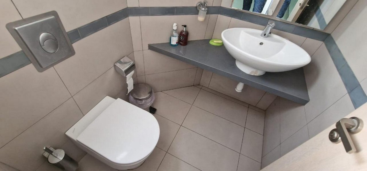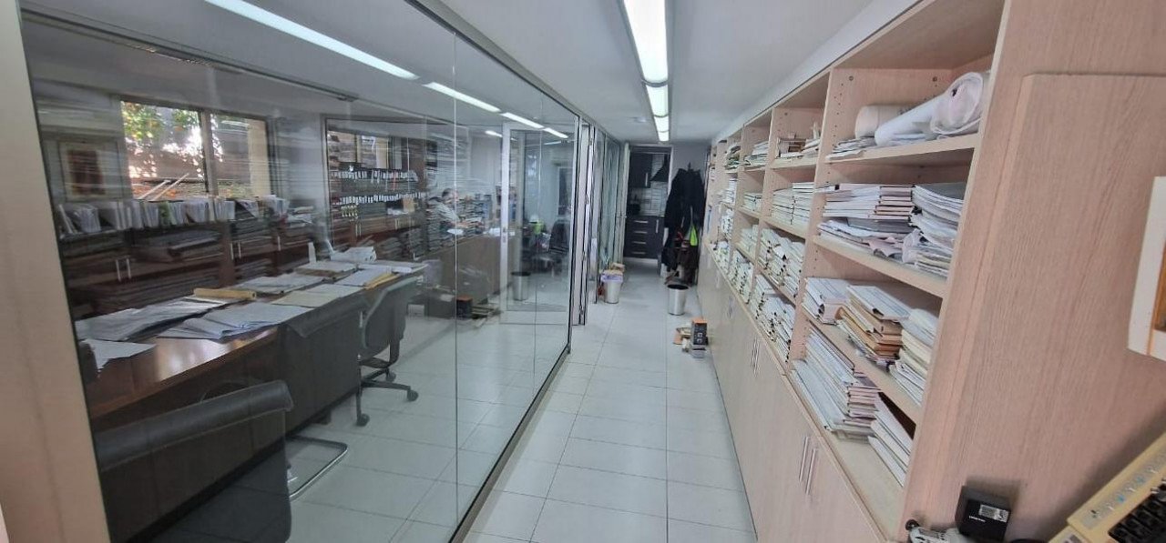 100m2 modern office with glass partitions for separate rooms, the office has its own kitchen, storage room and WC