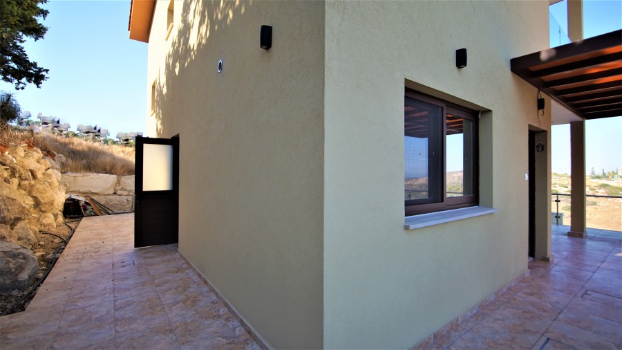 A brand new and modern detached villa for sale in Pareklissia, Limassol. The property is located on a quiet residential private road with just a few houses and is surrounded by mountains. The property offers three bedrooms, plus a home office/4th bedroom, three bathrooms, a large living area & double auto garage. Natural light flows effortlessly into the huge open plan living, kitchen & dining space, thanks to numerous windows, which blur the lines between indoors and out and allow fresh breezes to float gently into the home.
