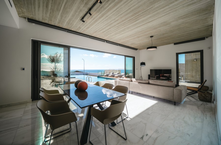 Is a prestigious and award-winning development of luxury villas located in the serene and unspoiled region of Sea Caves, Paphos. It is only a short distance from the Akamas National Park and is surrounded by olive trees and natural beauty. With breathtaking views of the Mediterranean, this development is situated in one of the most picturesque areas of Paphos. The development is just a 10-minute drive away from the charming St George fishing harbour and its stunning beach cove. It is also just a 5-minute drive from the famous Corel Bay Beach, which has been awarded a blue flag, as well as from the small town's bars, restaurants, and shops. Just as pearls are highly valued for their beauty and rarity, this development, with its proximity to renowned landmarks and breathtaking views, is truly a pearl of the Mediterranean.