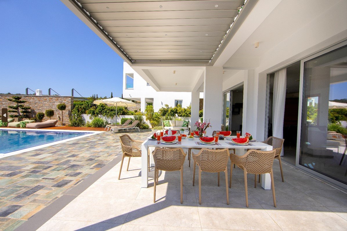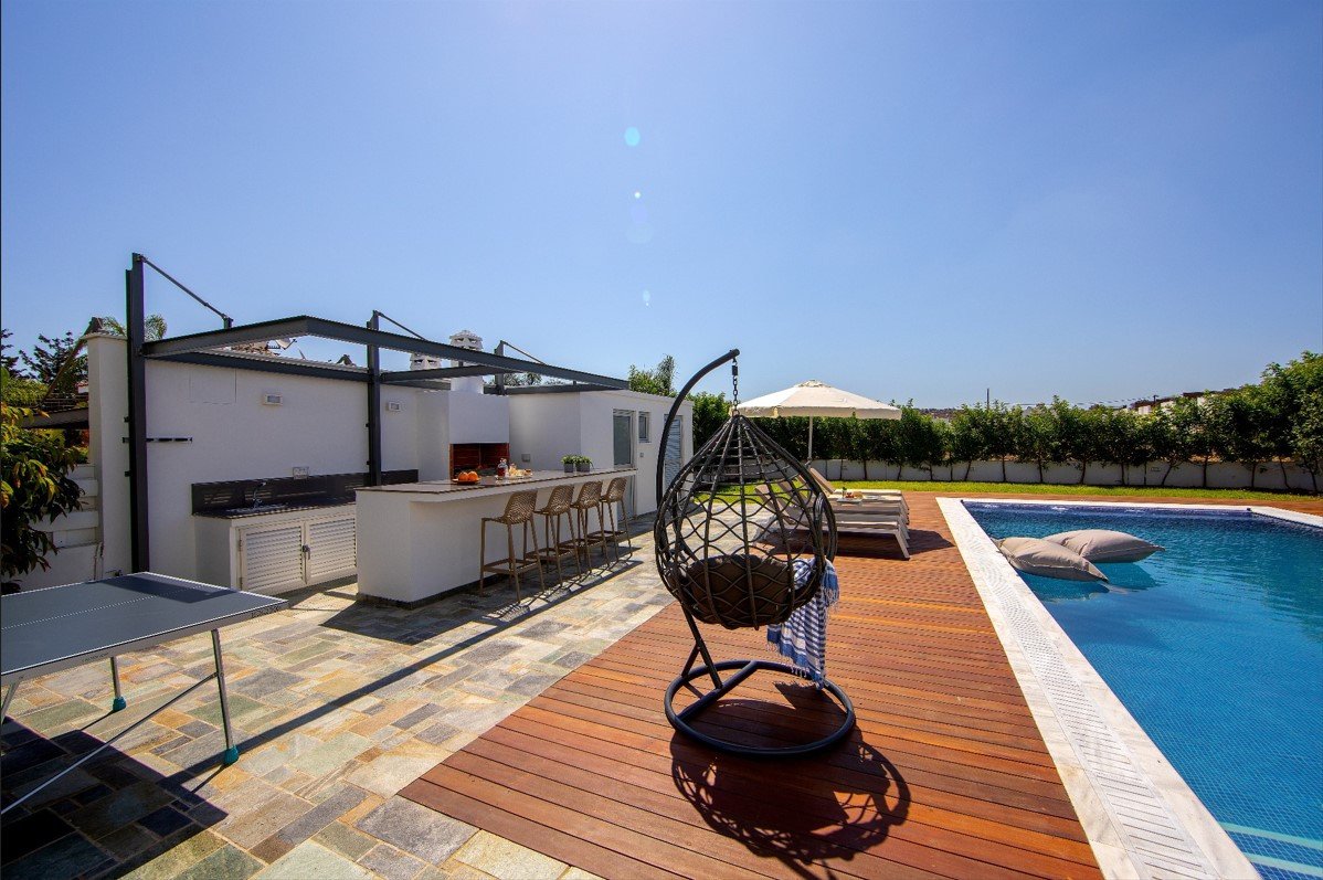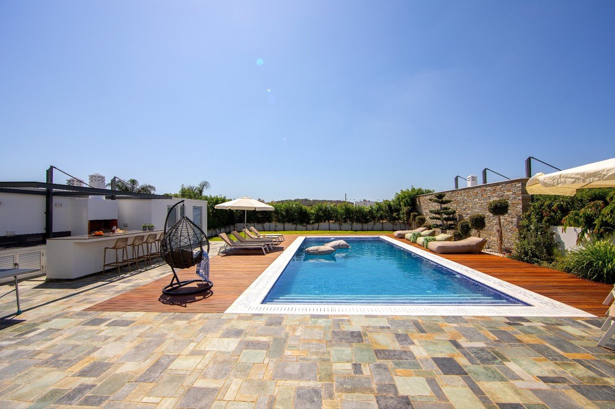 The jewel of the property is the expansive overflow swimming pool that embraces the residence, surrounded by different lounging areas that unfold from wooden decking both above and below the pool. The garden has been created for the ultimate Mediterranean outdoor lifestyle.