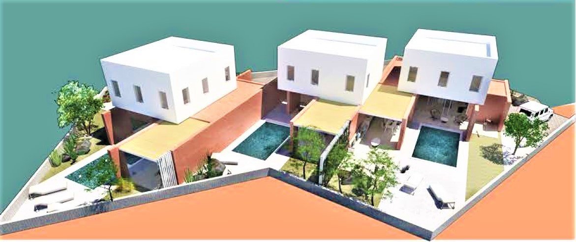 The project you're describing is a luxurious and exclusive development of three off-plan villas, located just 400 meters away from the beach and within walking distance of the main street in the popular tourist area of Protaras. These villas have been thoughtfully designed to seamlessly connect the interior with the exterior, creating a harmonious and open living space that maximizes natural light and ventilation.