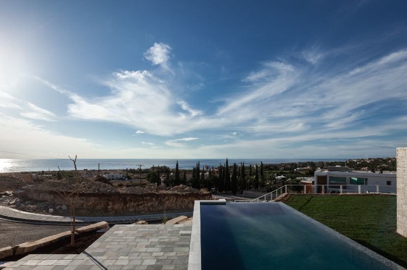 The villas will be built on a vantage point, each with panoramic views and a private garden.Their location is exceptional.To complement their imposing position, the villas will be of contemporary, fine design.Their lines will be clean and harmonious, offering residents total luxury, elegance and privacy. This villa consists of large open plan living/dining and kitchen area, and 6 spacious bedrooms with en suite bathrooms. One bedroom on ground floor, 4 bedrooms on first floor and one bedroom on basement. In the master bedroom there is a spacious walk in cupboard. All bedrooms have access to uncovered veranda! On the basement there is a maid’s room and consist of living room, laundry, storage, bedroom and bathroom. Each villa will have a landscaped garden, pool, verandas and paved patios. The rooms will be well proportioned, light, and finished in calm, neutral colours. The kitchen will have designer fittings, recessed lighting, granite worktops and integrated appliances. Bathrooms will be modern and sleek.