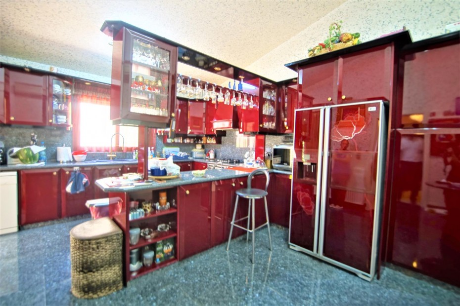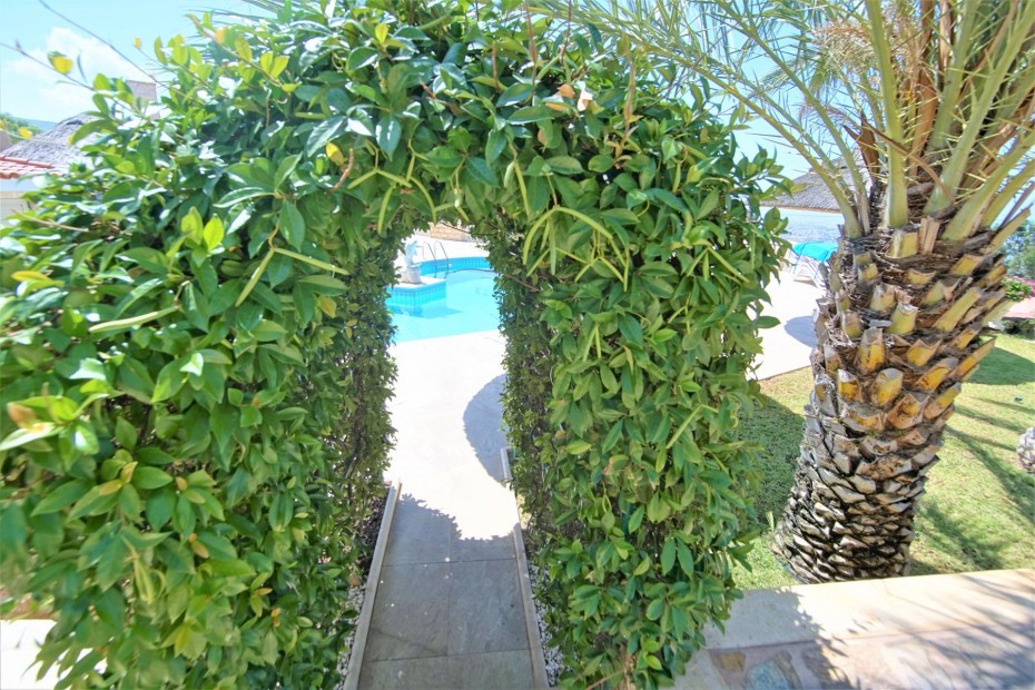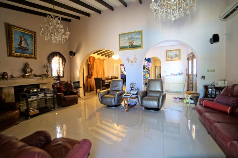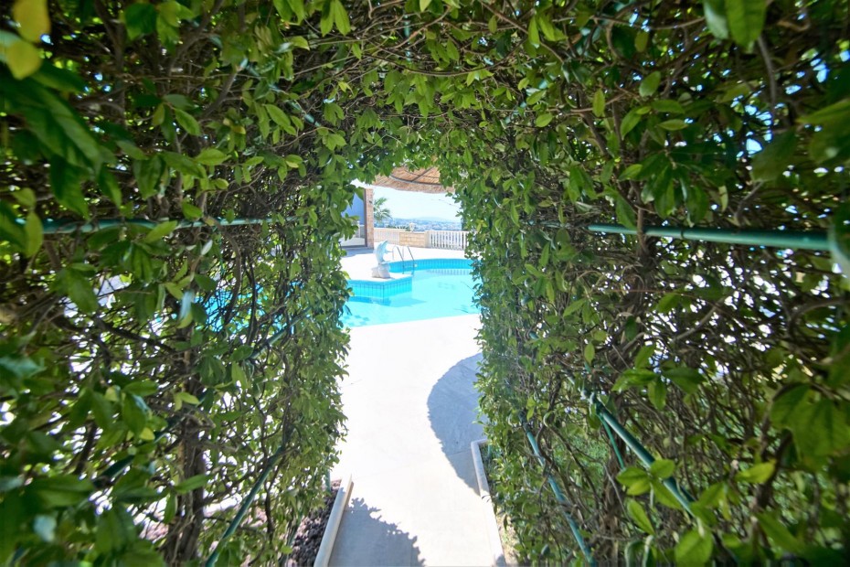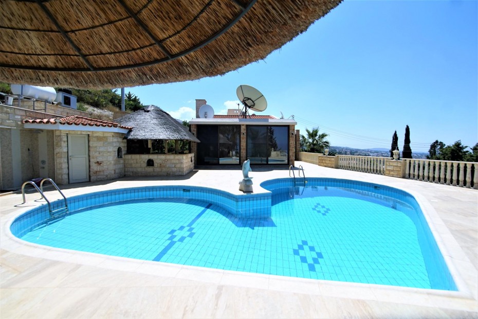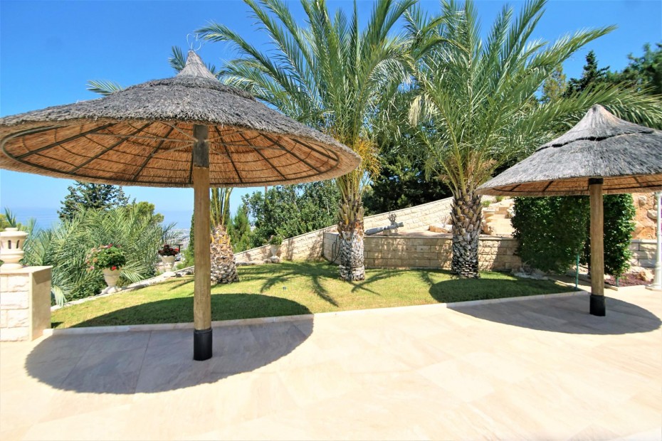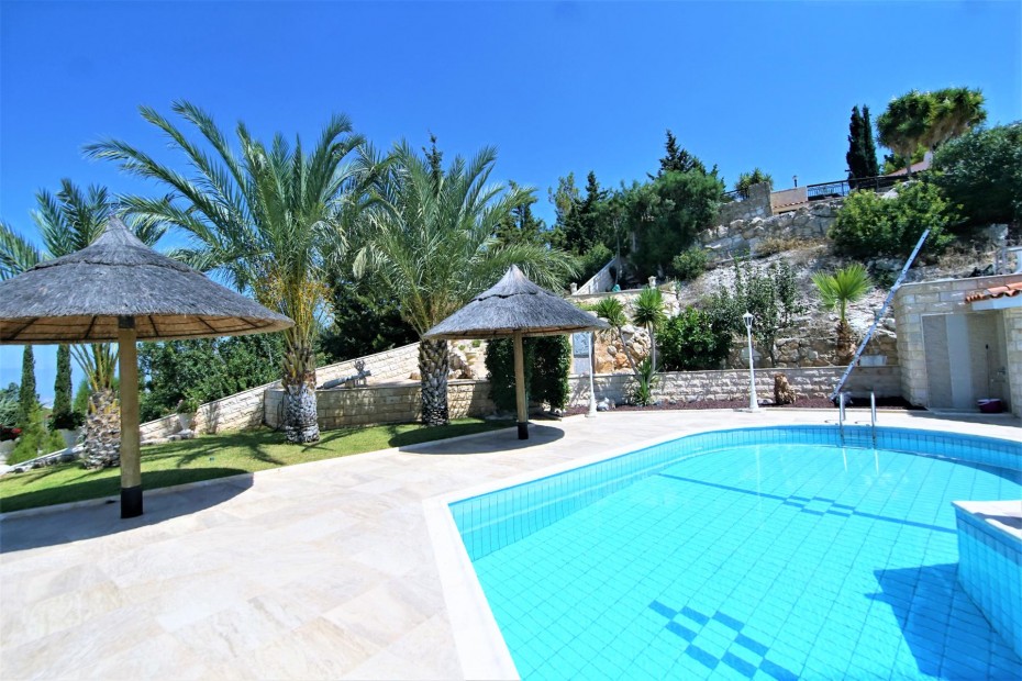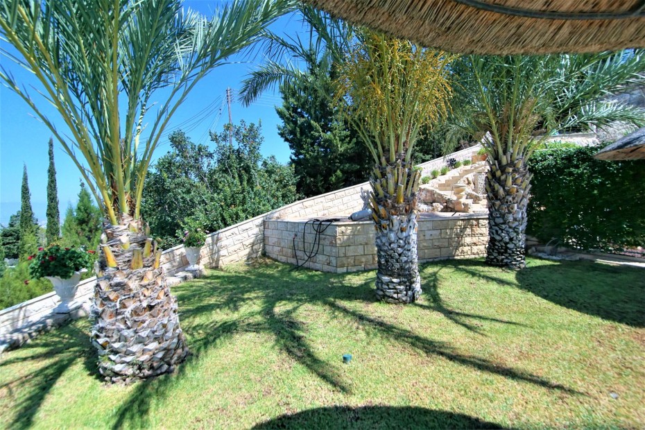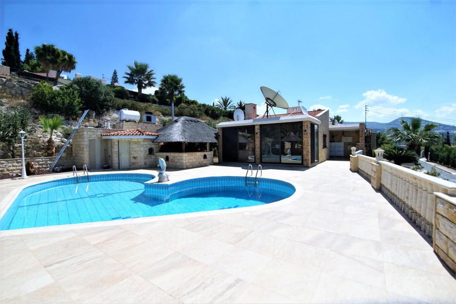 Renovated and updated in 2013 to an exceptional standard of Modern Design while still being sympathetic to the original property and area, this beautiful 200m2 Detached Bungalow has Four Bedrooms, and is set on a 1,699m2 cascading hillside plot that has been Landscaped with meandering paths, colorful tree and shrub borders, tiered ornamental gardens, numerous seating areas and a copious pool a by a Summer Kitchen with Bar. The sophisticated interior of this contemporary home has grandeur mixed with modern design, living and dining room windows all with fly screens and shutters. The feature of the living area is the open fireplace with its marble surround and hearth and granite mantle, also there is an underfloor heating. The breakfast kitchen is a real delight with a modern and practical design featuring the latest range of appliances, plentiful units. There are three well appointed double bedrooms with fitted wardrobes and one more bedroom that at the moment used as a wardrobe.The master bedroom with a patio doors leading out onto a balcony (offering marvelous sea views) and a en-suite bathroom.
