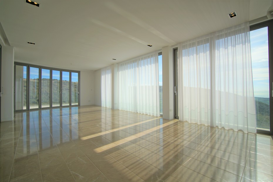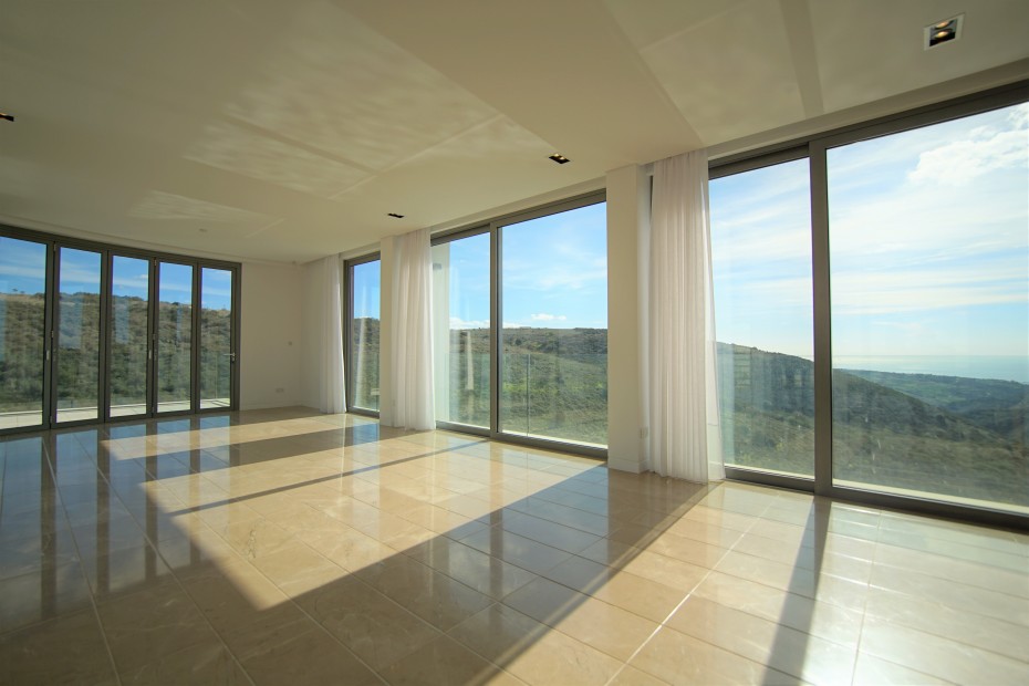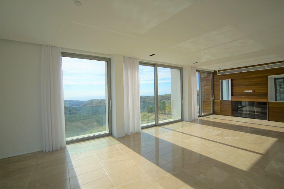 On the entering to the property you will find spacious parking space for 3-4 cars, stair down entrance door. When you entrance you wll find guest bedroom and guest bathrom on your left and living froom with kitchen on your right. Amazing mountains from any corner of the living room you will see from panoramic windows. Stairs down you will find 3 double bedrooms 3 bathrooms, outside pool area and inside closed garden.