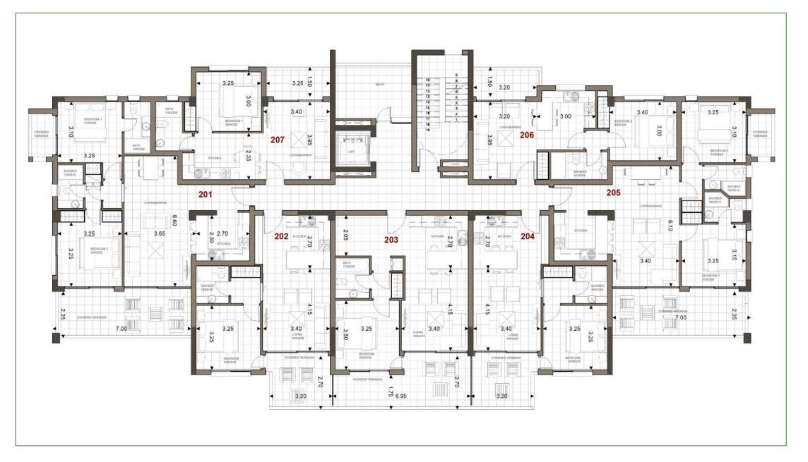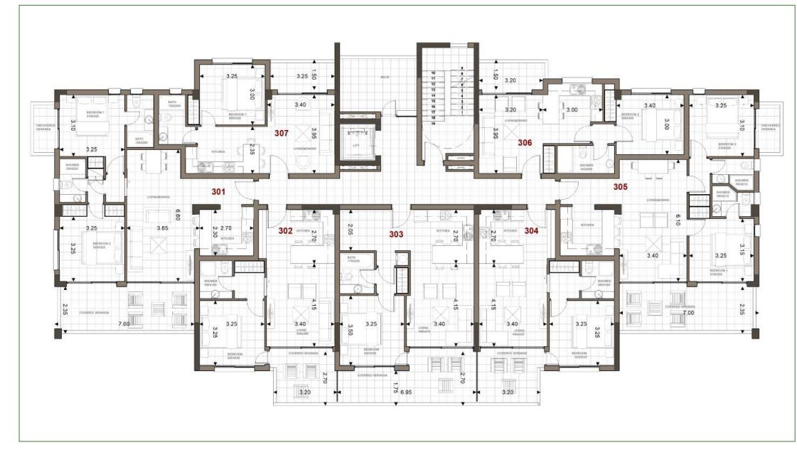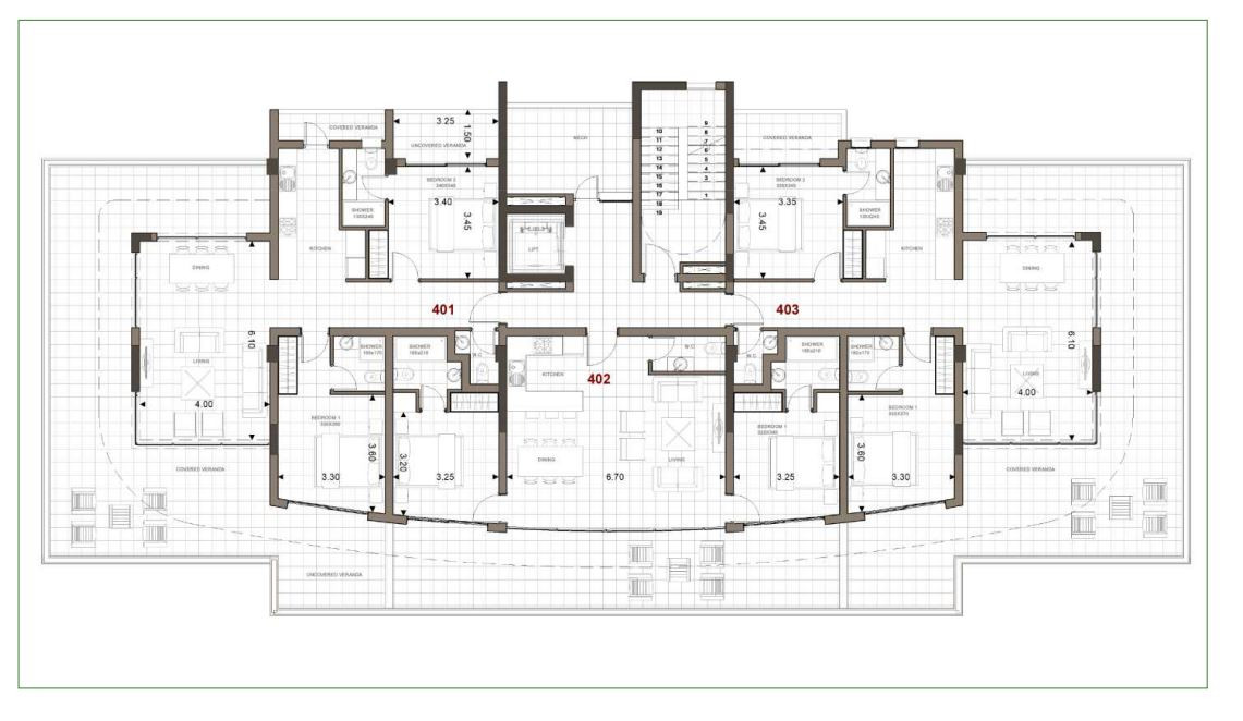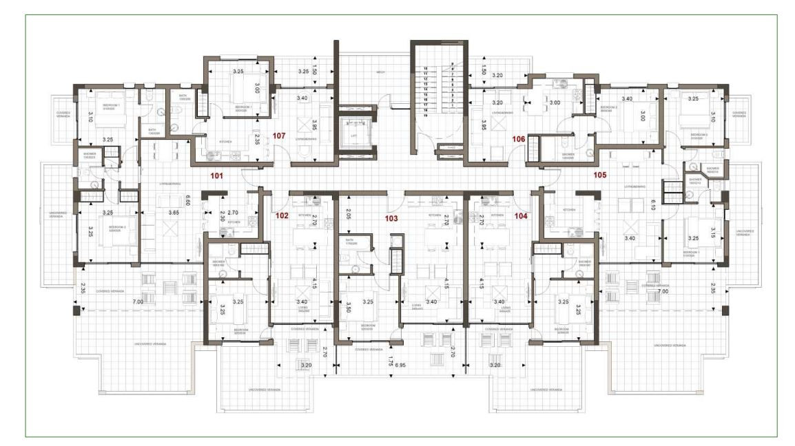 The residential block consists of 28 units ( 12 one bedroom, 3 one bedroom +study, 13 two bedroom.