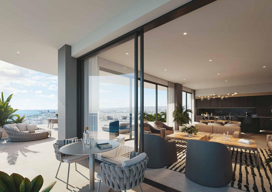 is a Seafront penthouse apartment that enjoys breathtaking views of the Mediterranean Sea at every angle. Being part of Limassol Del Mar, it expresses the island’s ‘new wave’ of architecture through its unique high-rise curvilinear design, which fully capitalises on the plot’s long sea frontage. It is strategically located right on the Limassol seafront, easily accessible and very close to the city’s luxury hotels in the heart of the city’s most vibrant and prestigious area. Limassol Del Mar, with its five-star services and facilities, will blend with a collection of gastronomic and shopping experiences at Cyprus’ most sought-after residential and leisure address. Invest in property in Limassol, Cyprus, and enjoy a world of benefits.