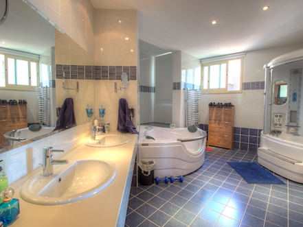 A very large beautiful, fully furnished, super luxury detached Villa with sea views ,12m x 6m kidney shaped swimming pool,Outdoor BBQ area,1 master bedroom en suite with 2 Jacuzzi and big walk-in closet 3 big bedrooms with en suite, separate wardrobe room, office ( it can be used as an extra bedroom),Wi-fi network, separate studio flat with different entrance for the housekeeper/maid, guest luxury Versace toilet,1 large kitchen with granite tops and 3 smaller kitchens,2 big storage rooms,Double Glazed Windows,Under floor Central Heating,Luxury Panoramic Lift,Separate Dining Area,Separate Sitting Area,Marble floors,Laminate wood in the bedrooms floor,2 wooden modern design pergolas,1 electric tent,Separate Bar Area/ Bar Area also at the swimming pool area,Spacious TV area with surround system and satellite dishFire place in the kitchen area,Fully Air conditioned,Surround music system with touch screens (indoor and outdoor),Alarm system,Pressurized water systemWater filter - Irrigation system with private well,Covered remote controlled garage for 3 cars,Electric remote controlled gate,Solar Photovoltaic System – 15kva-income around €5.000/year,Security Alarm System,CCTV IP Surveillance System,Fire Alarm,Matured Garden/irrigation system