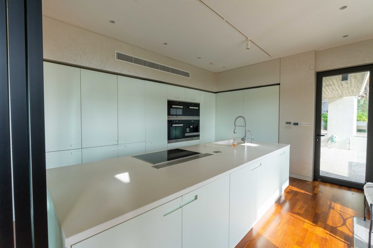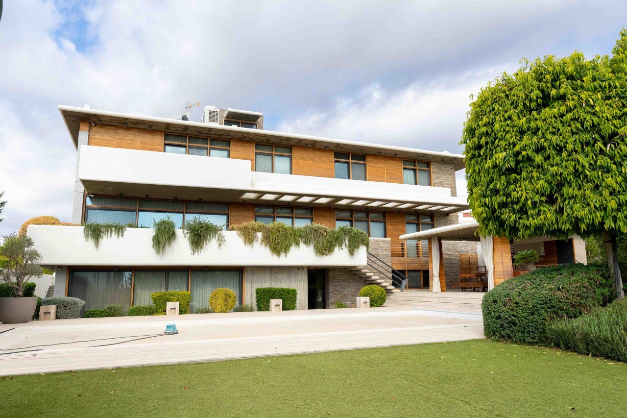 Details & Features: 1st Level (semi basement) : Spacious 70 m² self-contained apartment with master bedroom, living room, kitchen, 2nd bathroom and fireplace. 30 m² separate master bedroom en-suite for the housemaid, Cellar for wines and bar. 200 m² can be used as gym or entertainment, kitchenette and wash spaces, Sauna, Concrete safe room, big storage room Details & Features: 2nd Level (ground Floor) : Spacious 200 m² which include, reception area, Kitchen area, storage room (hidden behind the kitchen) 12 person dining room, 3 sitting areas 1 with fireplace, all spaces enjoying magnificent unobstructed views of the Mediterranean Details & Features: 3nd Level (1st floor) : Spacious 200 m² which include 4 double bedrooms 2 of them en-suite each enjoying magnificent unobstructed views of the Mediterranean