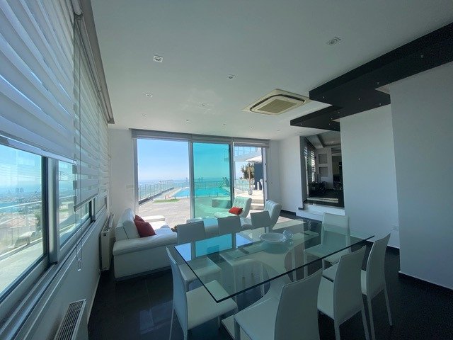 A beautiful villa just 9 years old located in the prestigious area Agios Athanasios with an outstanding sea and mountain view. It has 5 bedroom with En-suite in the master bedroom and dressing room. In the basement it has 2 covered parking spaces and a maid room with wc and kitchen. As extra feature it has 5X10 overflow swimming pool with 8 jets for hydro massage , central heating , AC units on all rooms and water softener system.