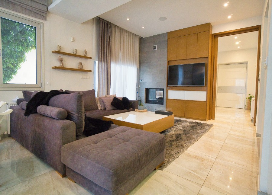 Nestled in the prestigious Agios Athanasios neighborhood, an exceptional residence awaits discerning buyers seeking both luxury and functionality. This distinguished property, a mere 7 years young and boasting full title deeds, epitomizes a blend of contemporary elegance and enduring craftsmanship. Meticulously designed to harmonize practicality with refined aesthetics, the home features four ensuite bedrooms including a master suite with a walk-in closet. A highlight of the residence is its versatile attic space, complemented by a main living area and a cozy sitting room complete with a double-sided fireplace.