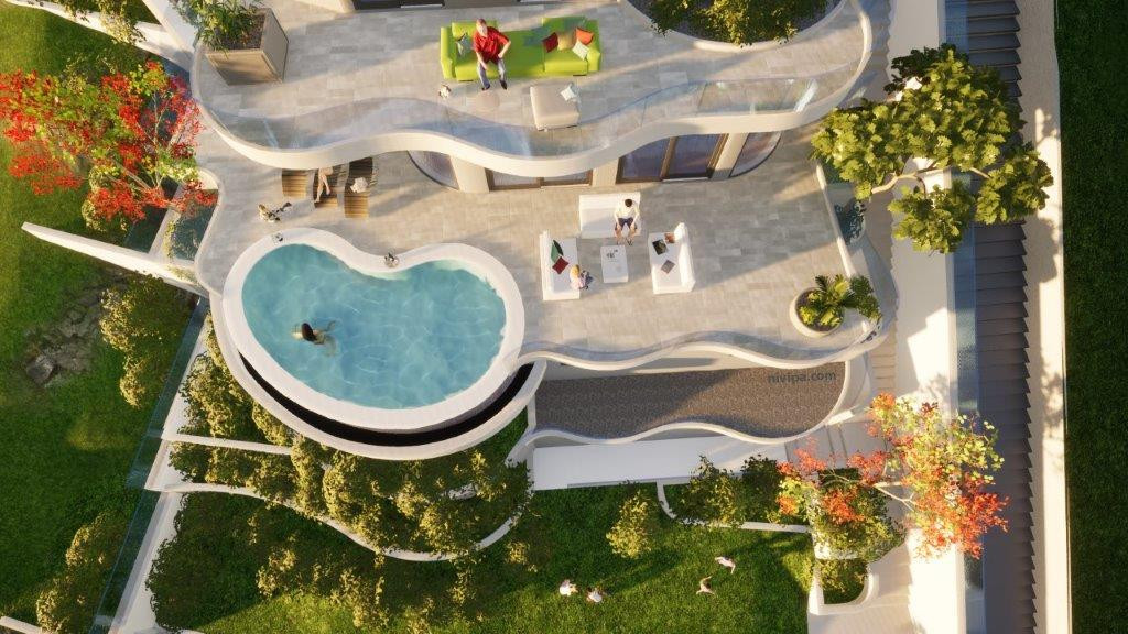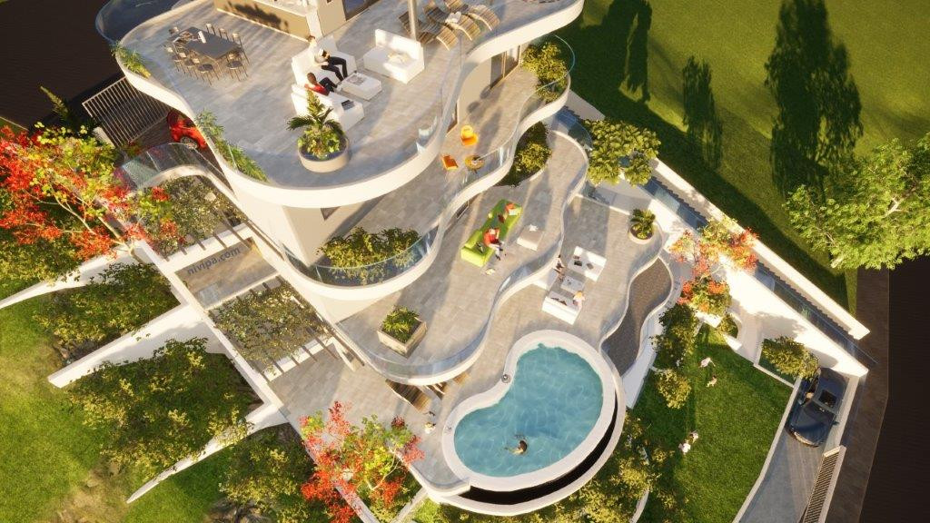 Multi-level panoramic verandas on all floors with glass balustrades