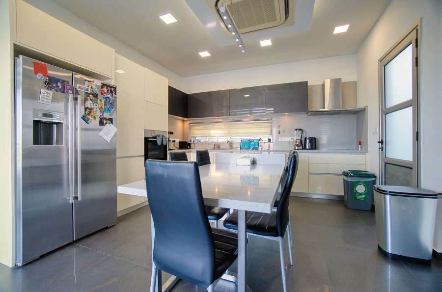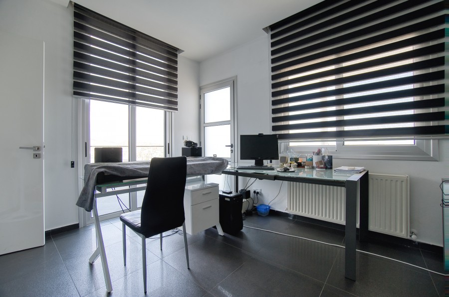 This stunning 360-degree view villa, located in the prestigious Agios Athanasios area (Sfalagiotissa), offers an unrivaled position with panoramic views of the entire city of Limassol. Set on an 860 sqm plot elevated above the road, it provides complete privacy. The villa features three kitchens, including a main kitchen, a small kitchen on the ground floor, and another in the basement. The master bedroom is en suite with a dressing room, and all first-floor bedrooms are equipped with electric shutters. The main bathroom includes both a shower and a corner bath. The basement offers two covered parking spaces, a WC, a small kitchen, a small room, and additional storage. Outside, the ground floor includes two uncovered parking spaces, a 5x10 overflow swimming pool with 8 jets for hydro massage, a BBQ area, and a garden. The property is equipped with petrol heaters, air conditioning units in all rooms, and a water softener system, ensuring year-round comfort and convenience.