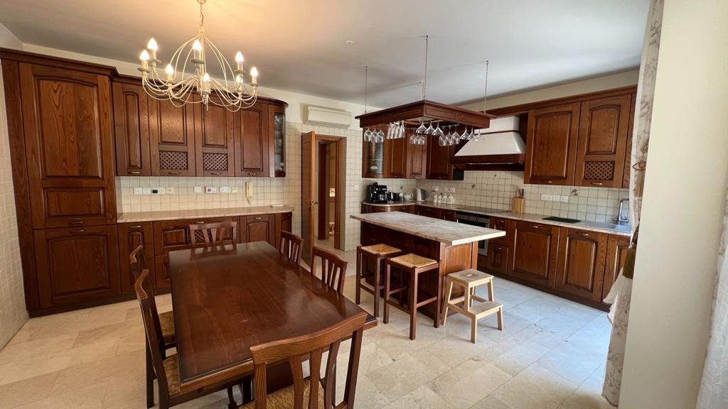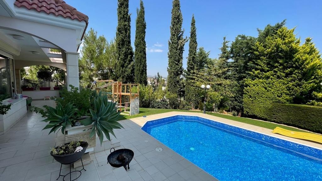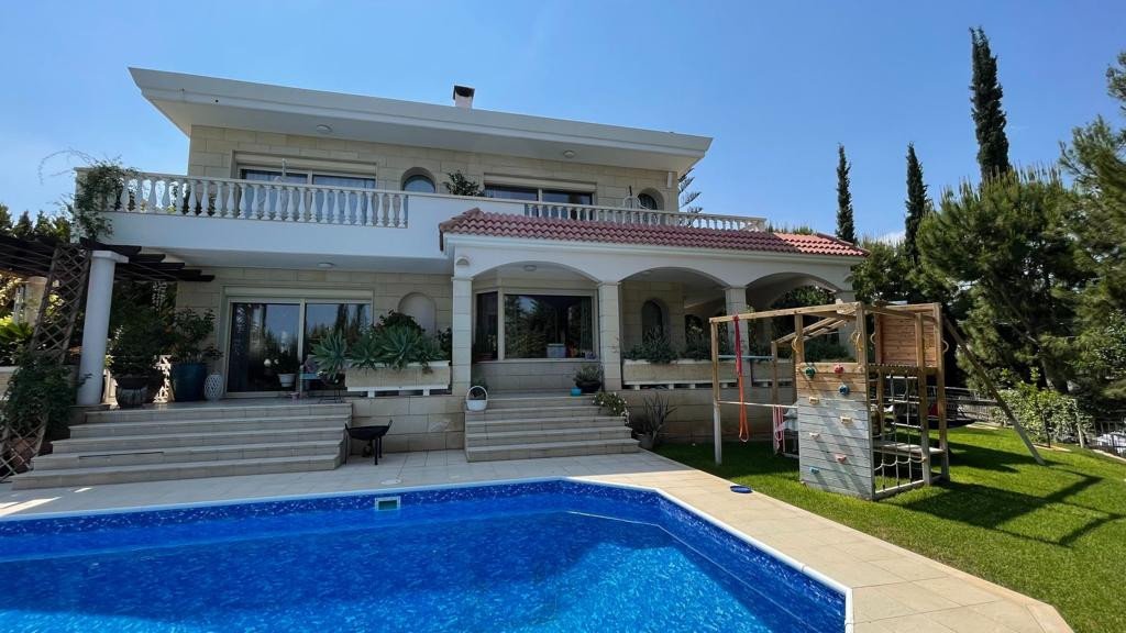 The 5-bedroom villa with spectacular views of the mountains, sea, and the city is located in the most prestigious area of Limassol, on one of the hills of Agios Tychonas.
