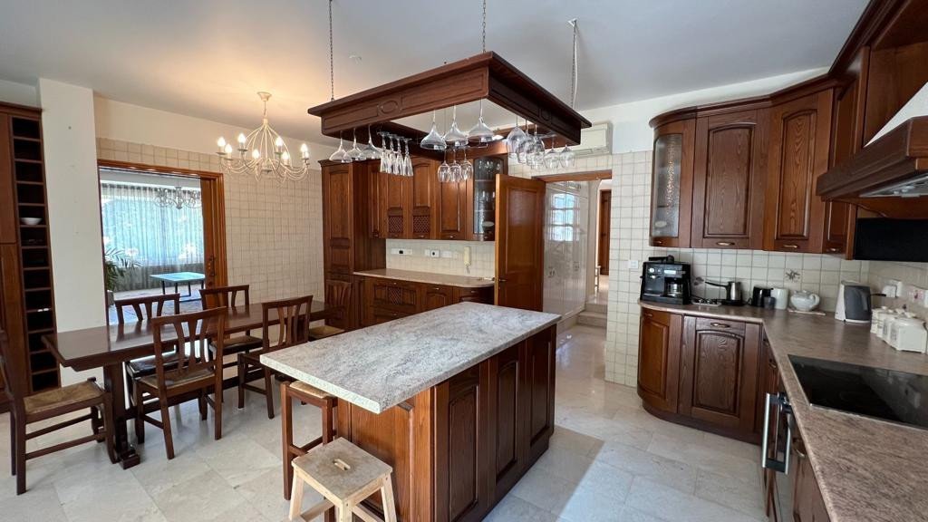 The covered area of the house is 495 sq.m, covered verandas 90 sq.m, uncovered verandas 40 sq.m, land 1293 sq.m. The pool size is 10 * 4 m. The position of this villa is in harmony with its surroundings and has a large, carefully selected, gorgeous private garden with an irrigation system, patios, kid’s playground.