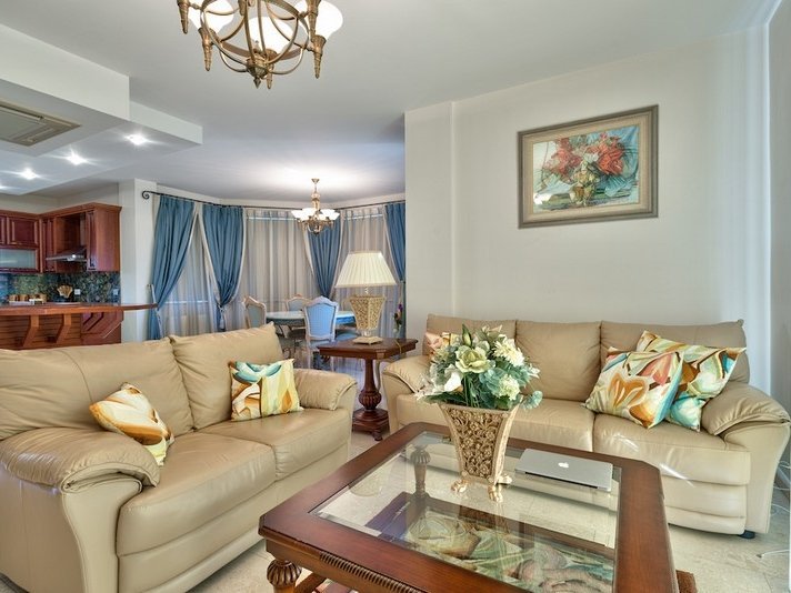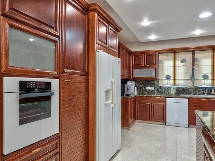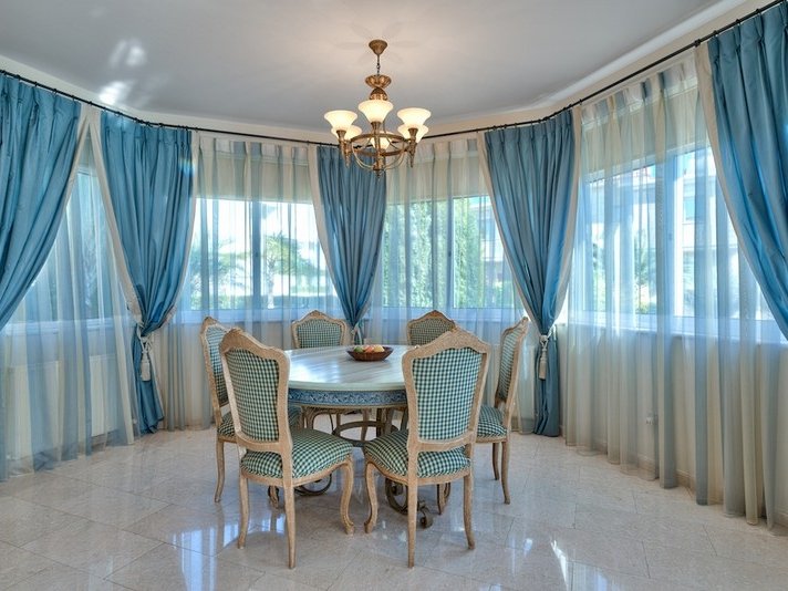 luxurious 5-bedroom villa with stunning sea views is located just a few minutes walk from the beach in the area of ??the Four Seasons Hotel.On the ground floor there is a spacious living room with a fireplace and a multimedia system for listening to music and watching movies in high quality, a dining area, an equipped kitchen, a wardrobe and a guest bathroom.The second floor includes four bedrooms, two of which have their ownbathrooms, private bathroom for guests.The house is fully equipped with air conditioning, alarm, internet and satellite TV system.In the basement there is a garage for two cars with automatic gates, a sauna, rooms for maintenance at home, and a bedroom with a shower for servants or nannies.On a plot of 1 177 sq. M. there is a large swimming pool and covered patio, as well as a barbecue area.The house has a title and is sold with a company.