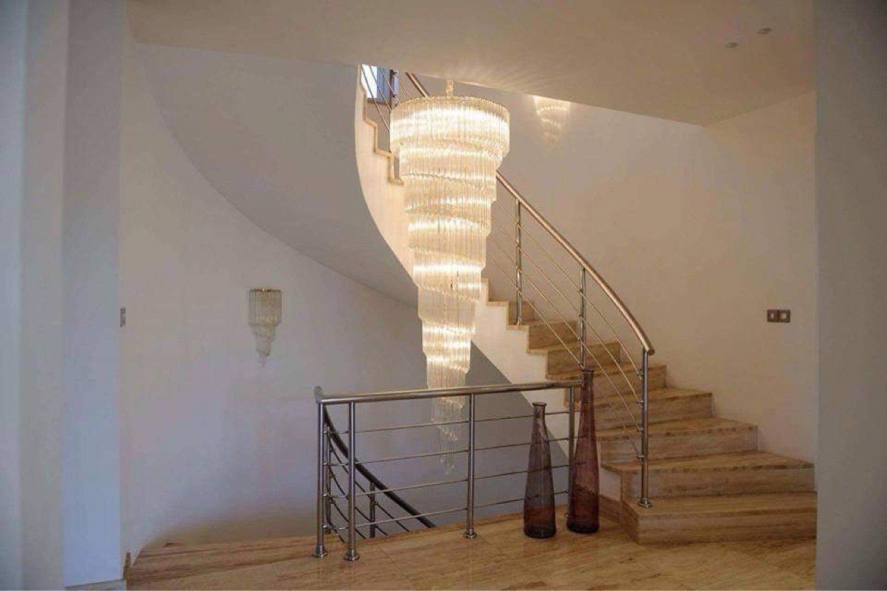 Sophisticated Details: Stainless railings, designer chandeliers, teak wood bedroom and toilet doors, and an impressive Irocco wood pivot entrance door.